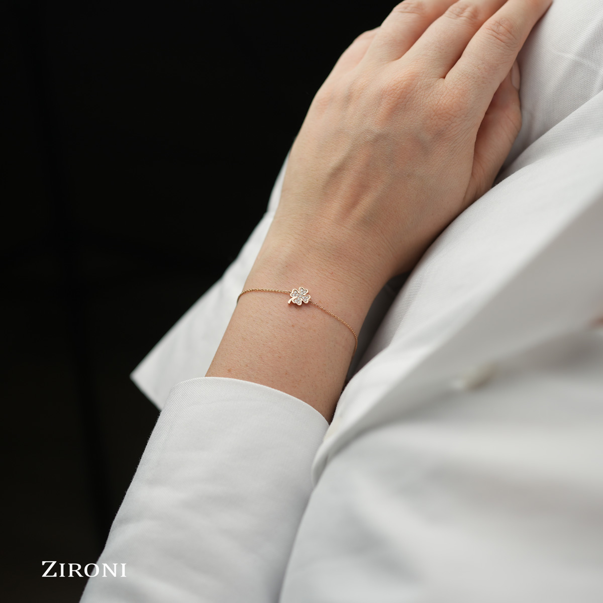 Bracciale in oro rosa con quadrifoglio e diamanti (ct 0.09)