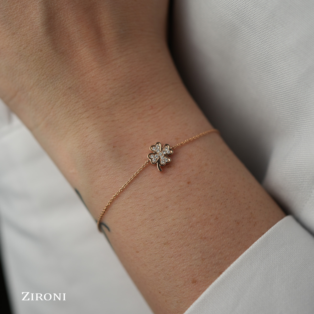 Bracciale in oro rosa 18K con quadrifoglio e 13 diamanti taglio brillante (ct 0.09 - G - SI)