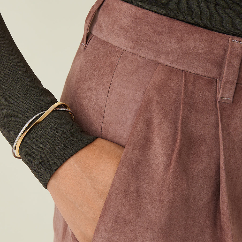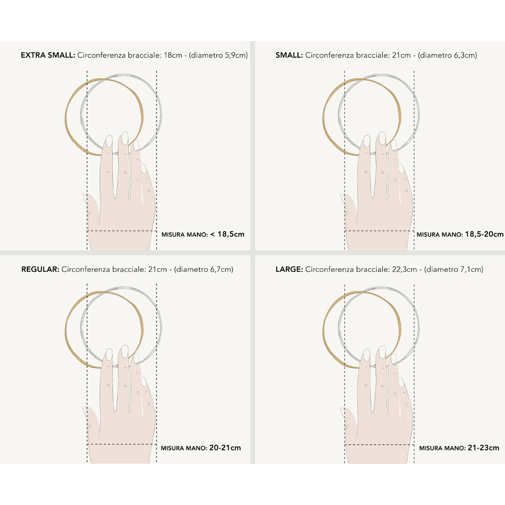 Un filo ritorto in oro giallo 18 carati, realizzato grazie all’esclusiva lavorazione artigianale del coil, si intreccia a un altro filo in oro bianco impreziosito da diamanti taglio brillante. Dal design sofisticato, può essere indossato da solo o abbinato a più bangle per un effetto mix and match.