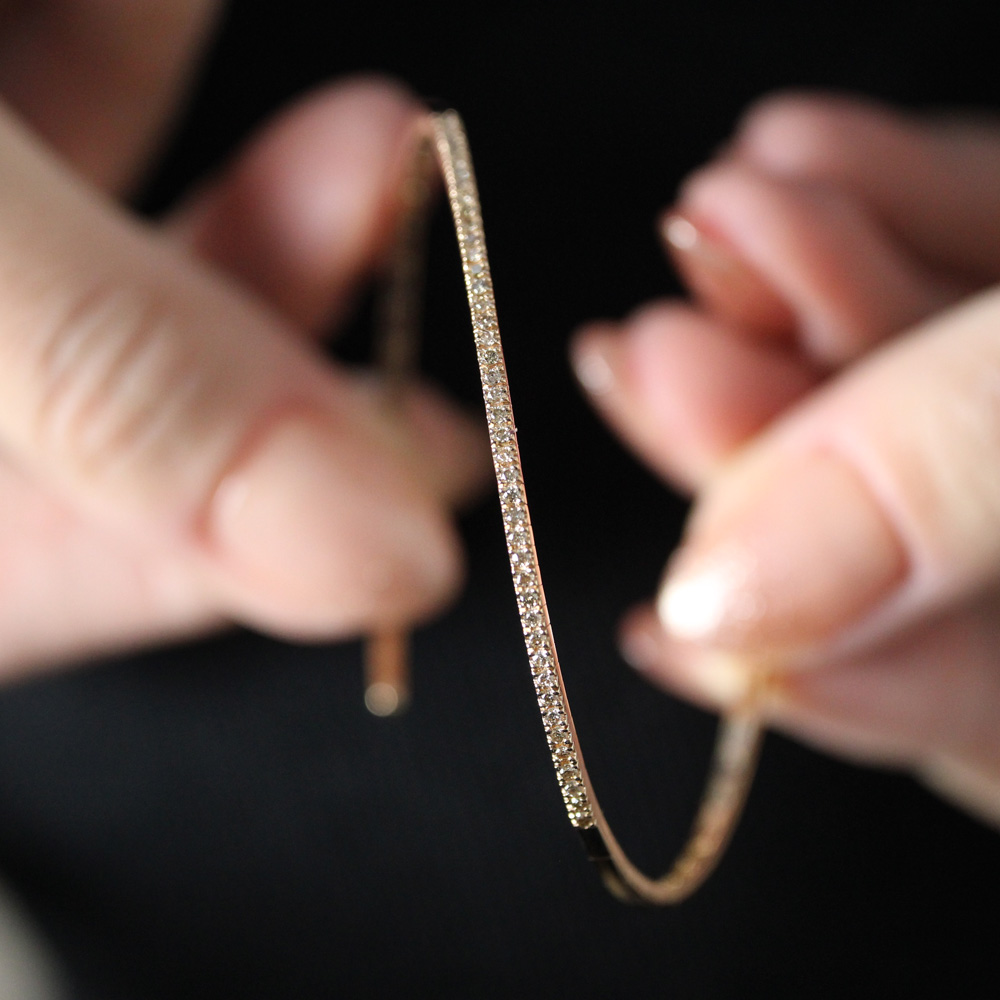 Bracciale rigido elastico in oro rosa 18K con diamanti brown taglio brillante (ct 0,36)