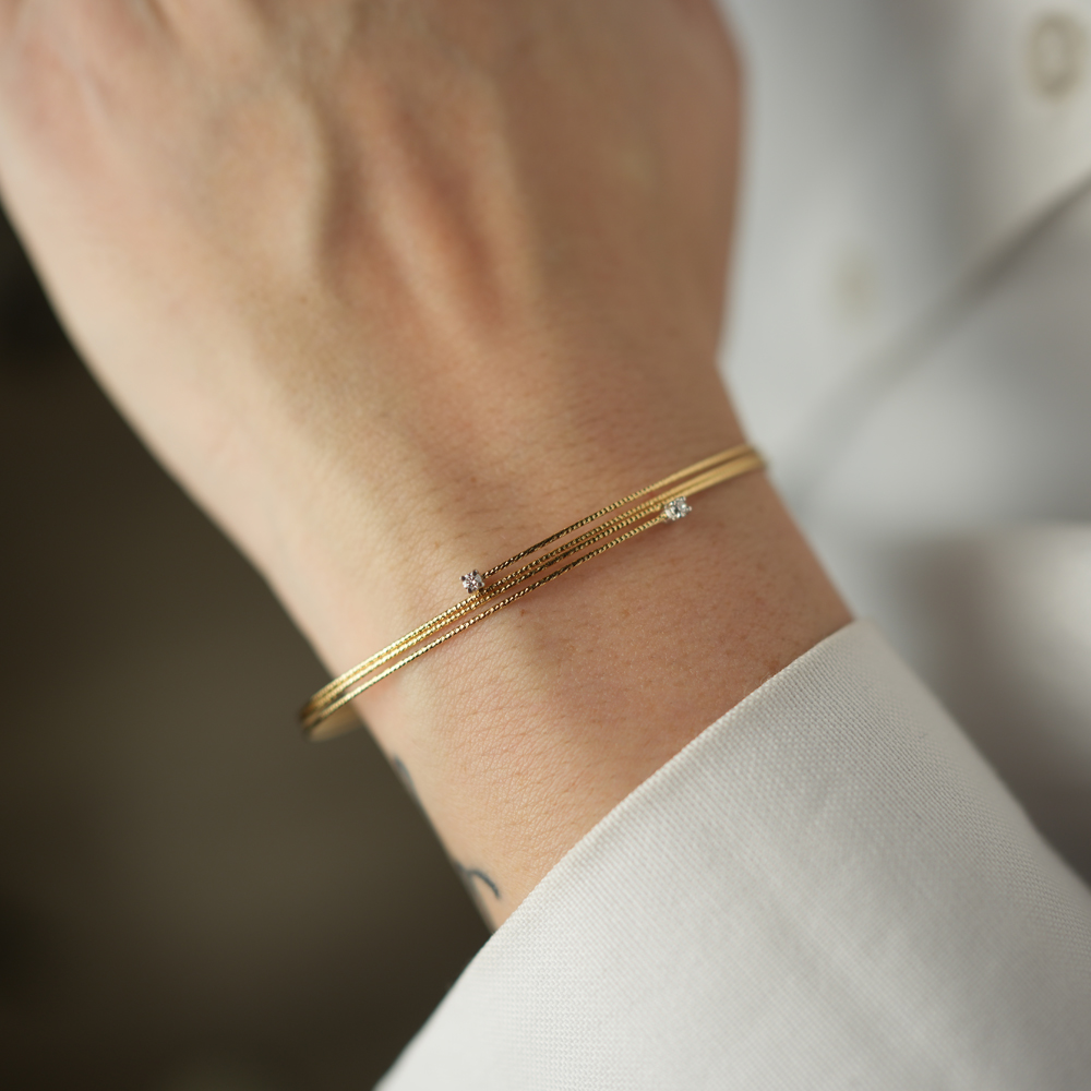 Gioielli in oro 18K e lega a memoria di forma anallergica, pensati per unire eleganza e funzionalità. Leggeri, resistenti e facili da indossare, accompagnano ogni gesto con naturalezza e stile. La speciale struttura elastica consente una vestibilità facile e sicura, mantenendo nel tempo la forma originale.
