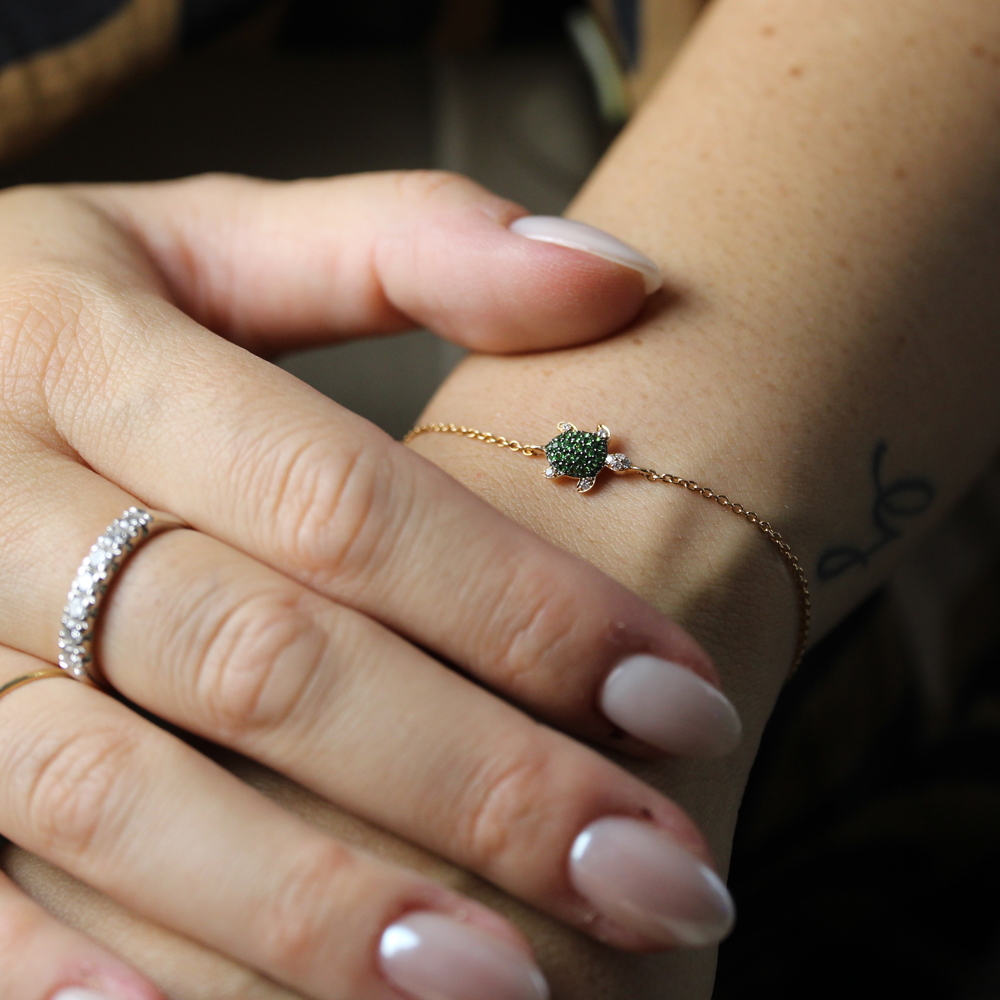 Bracciale tartarughina in oro rosa con tsavoriti (ct 0,20) e diamanti (ct 0,04)