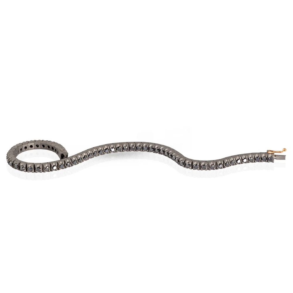 Bracciale tennis classico in titanio, oro rosa 18 kt e diamanti black da 5 punti.