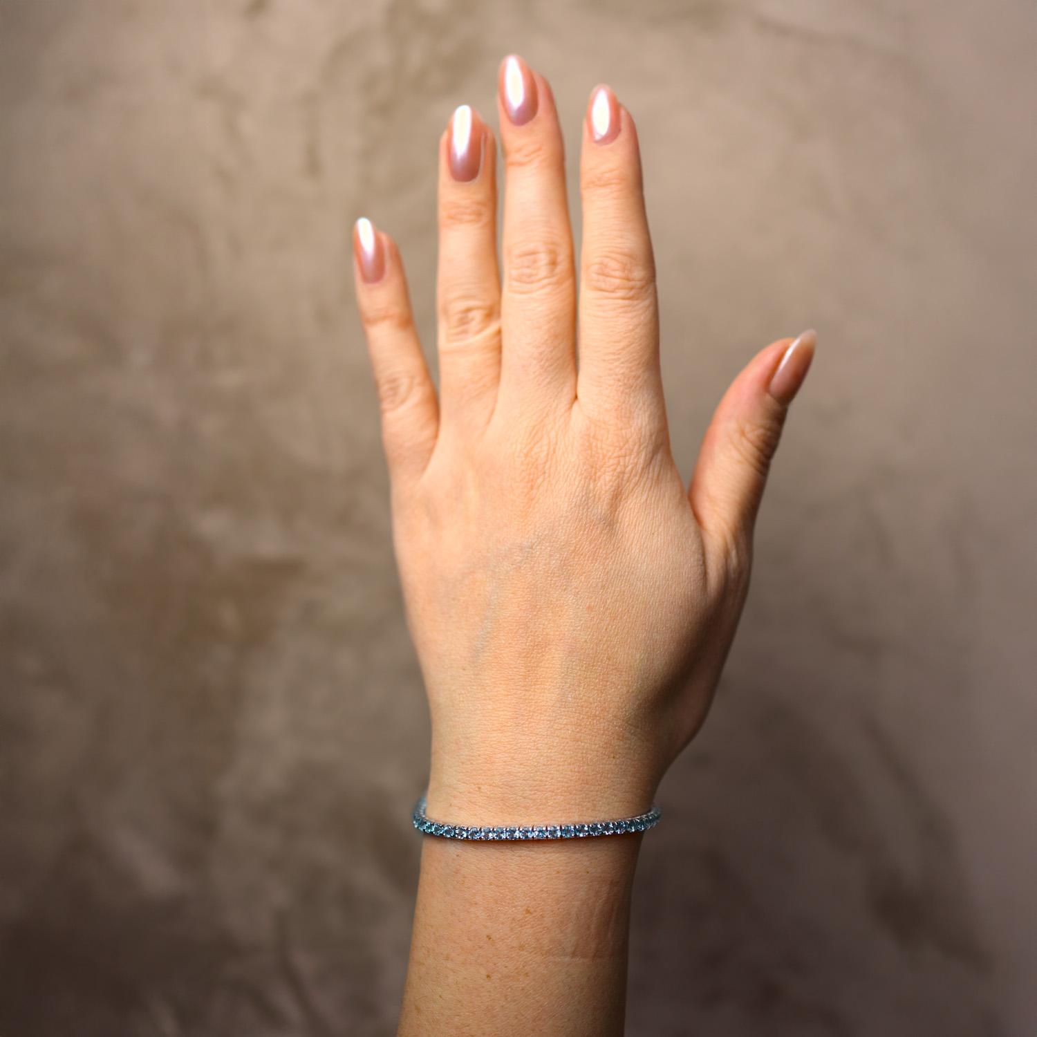 Bracciale tennis in oro bianco con acquamarina (ct 4,10)