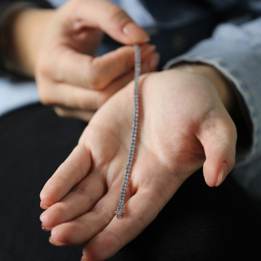 Bracciale tennis in oro bianco 18K con acquamarina taglio brillante (ct 4,10)