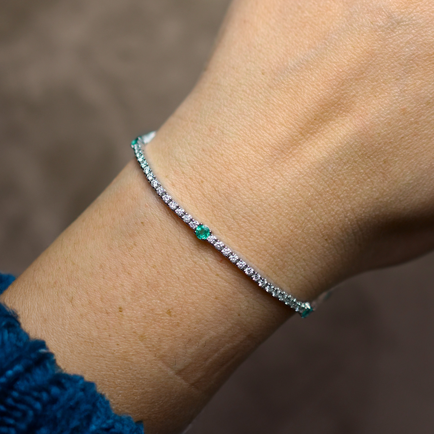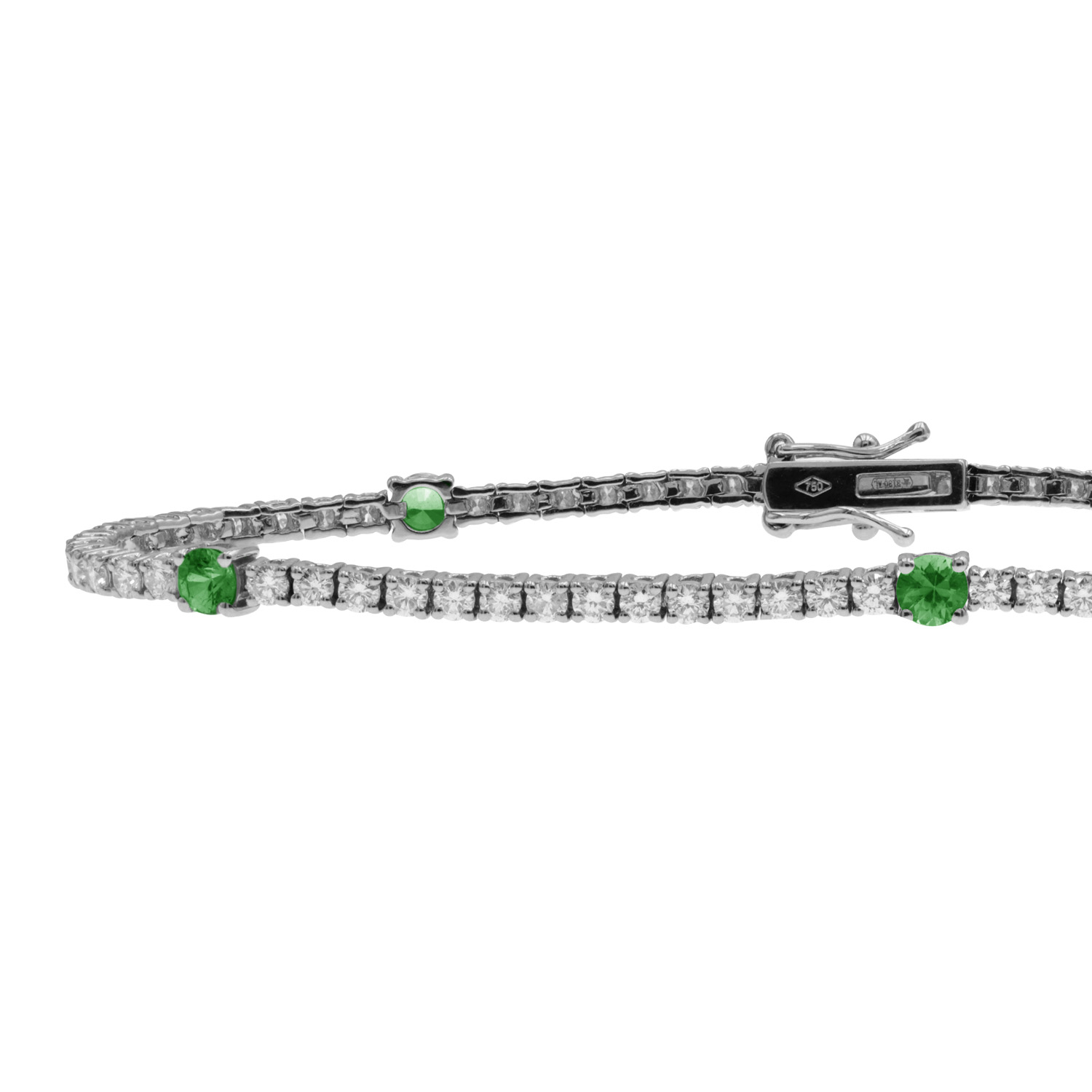Bracciale tennis in oro bianco con diamanti (1,45 ct) e smeraldi (0,60 ct)