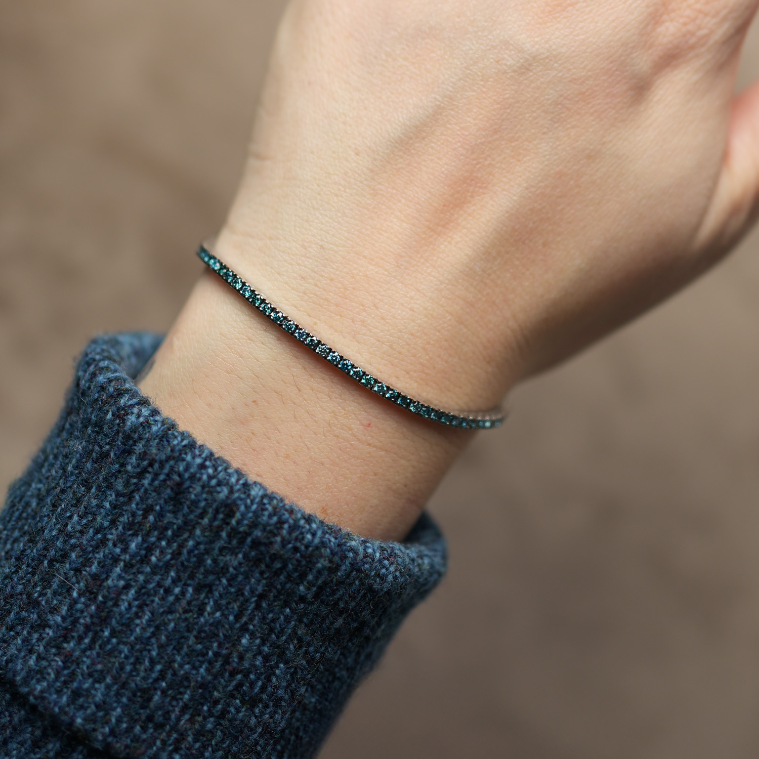 Bracciale tennis in oro bianco con diamanti blu (ct 2.25)