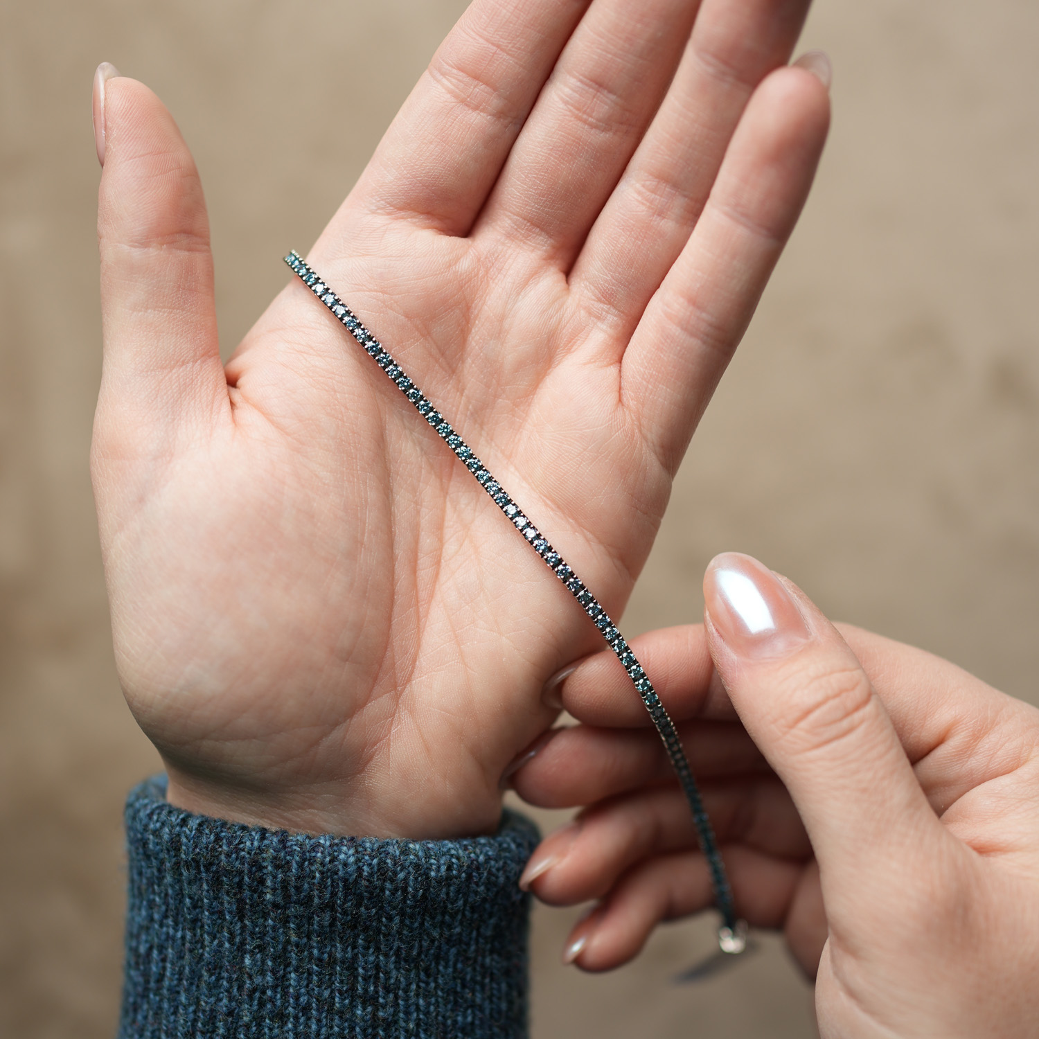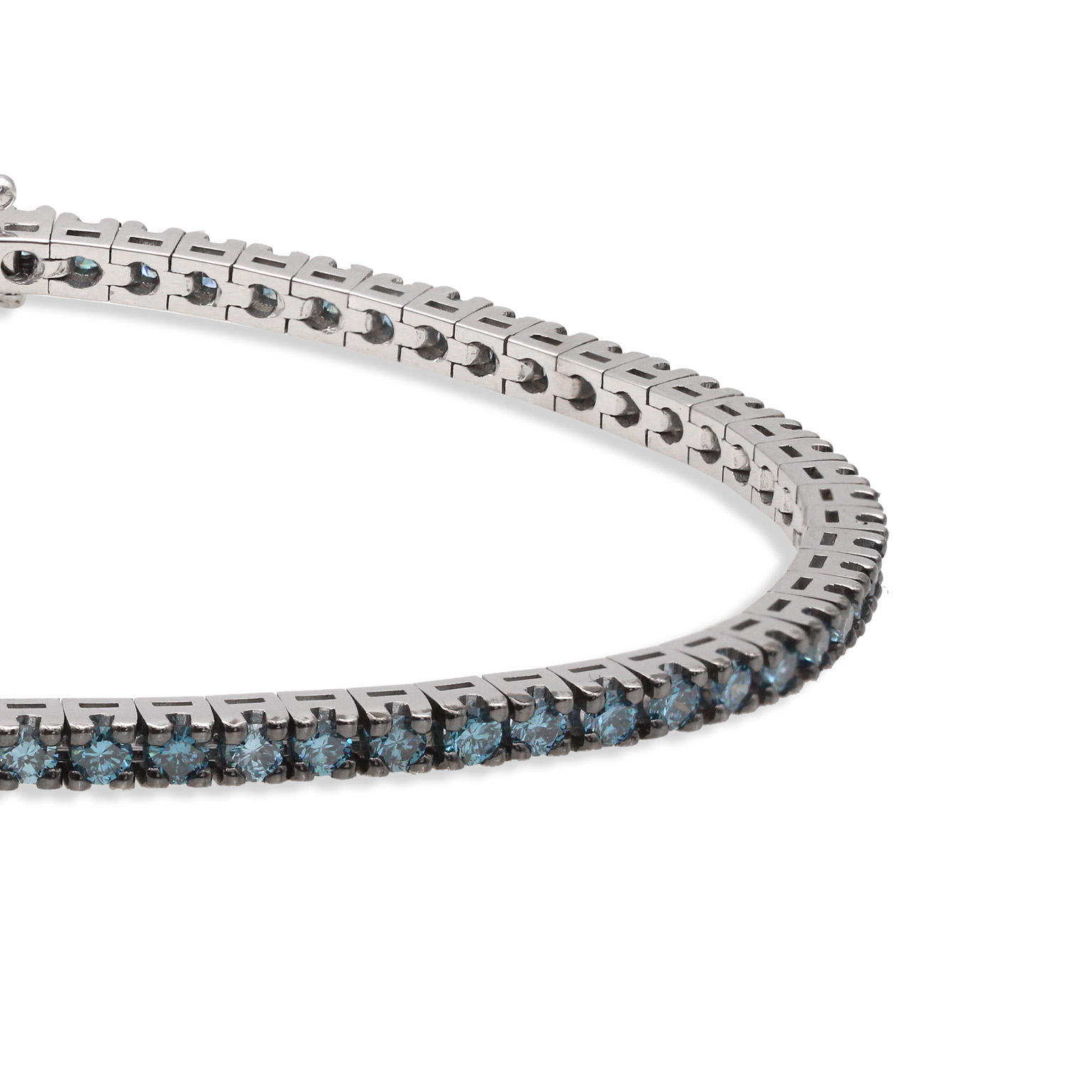Bracciale tennis in oro bianco 18K con diamanti blu taglio brillante (ct 2.27)