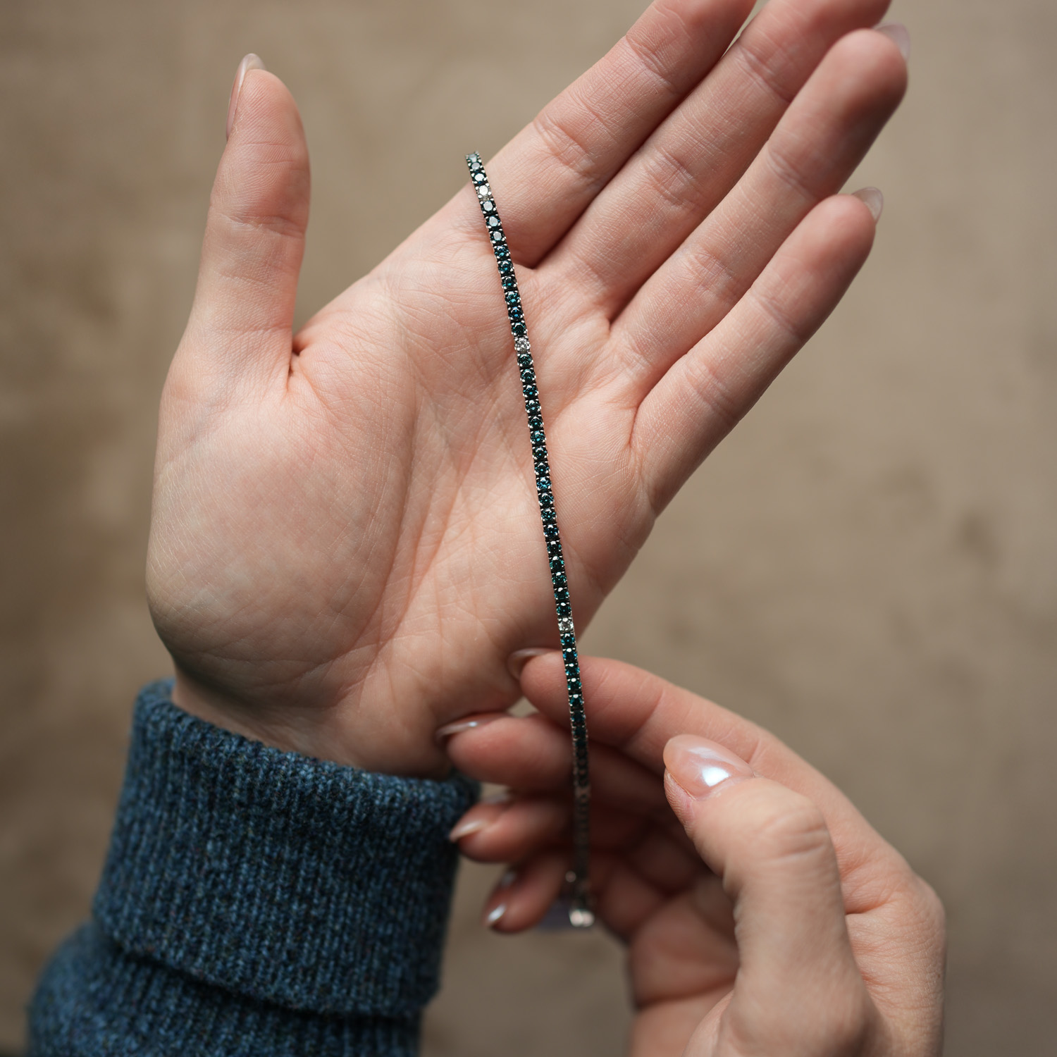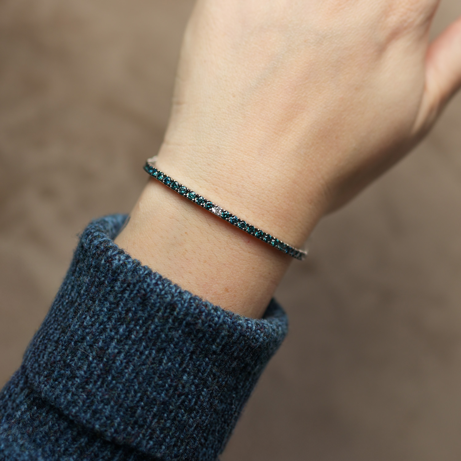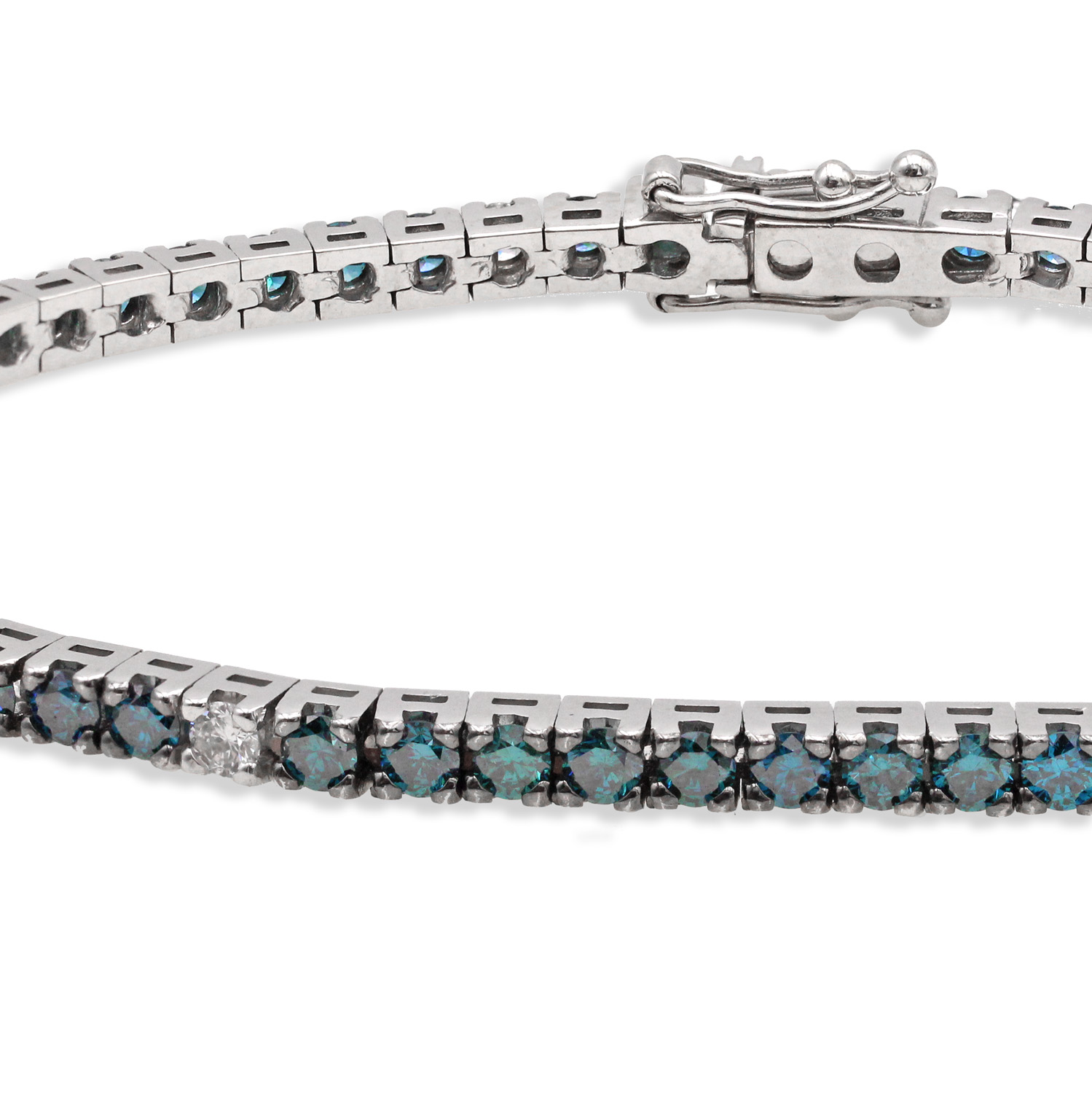 Bracciale tennis in oro bianco 18K con diamanti blu (ct 3,31) e diamanti bianchi taglio brillante (ct 0,25 - G - VS)