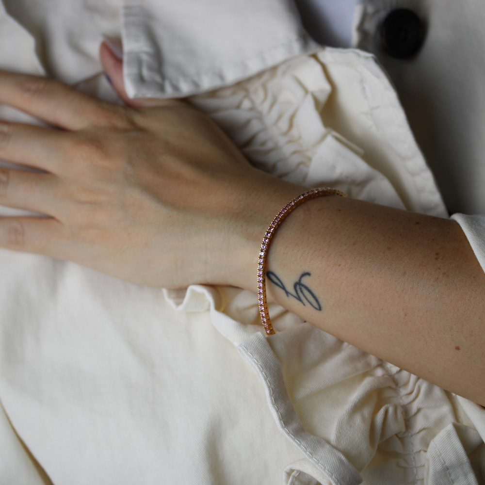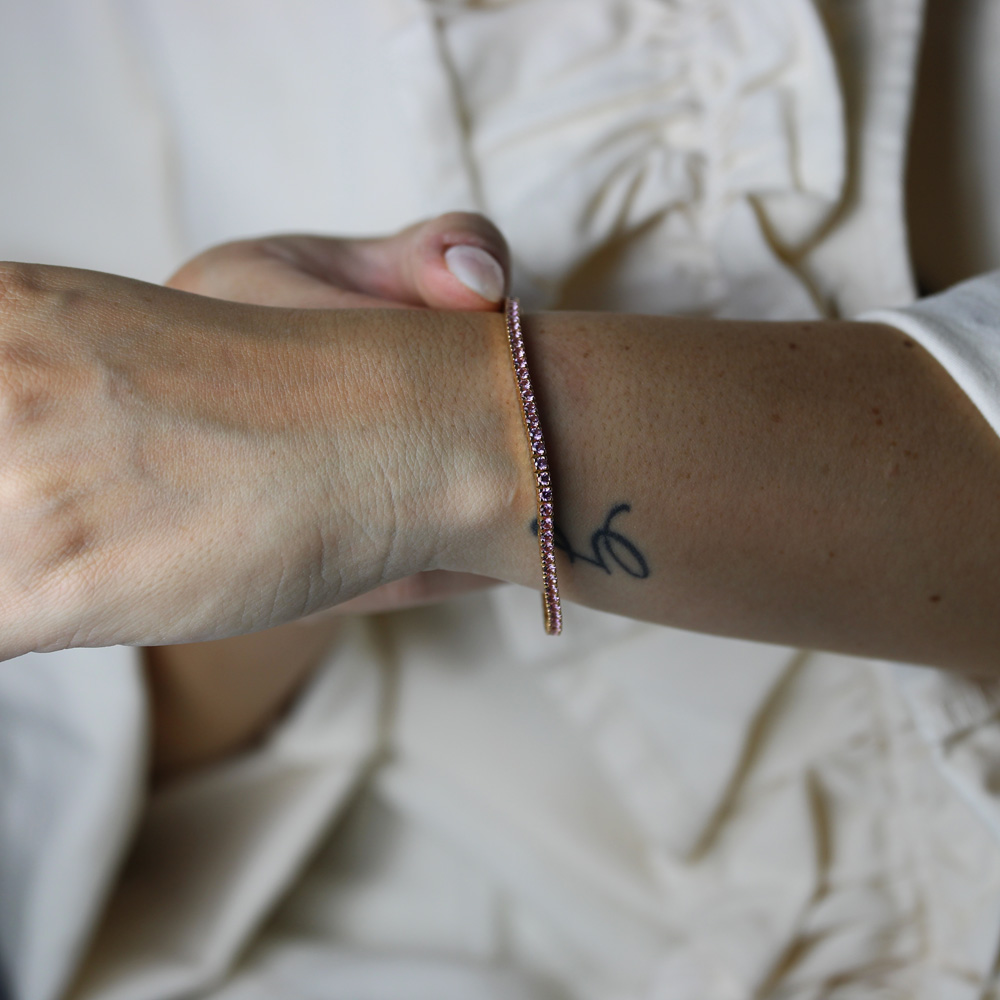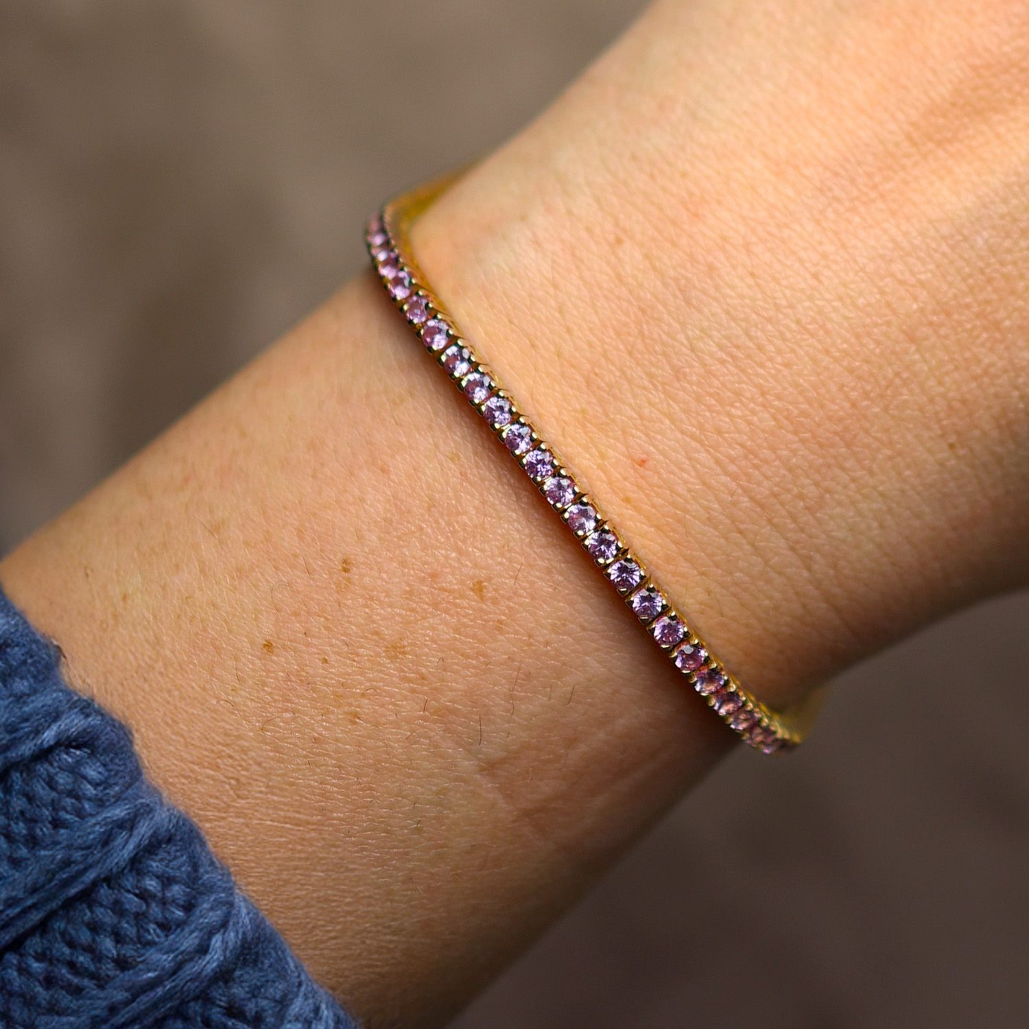 Bracciale tennis in oro rosa con zaffiri rosa (ct 3,70)