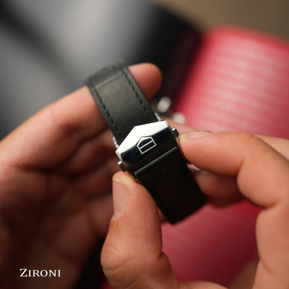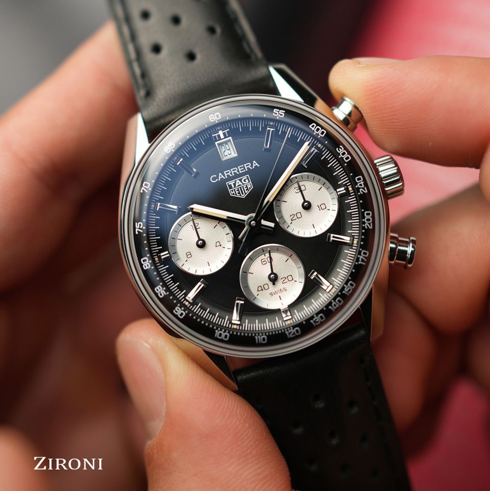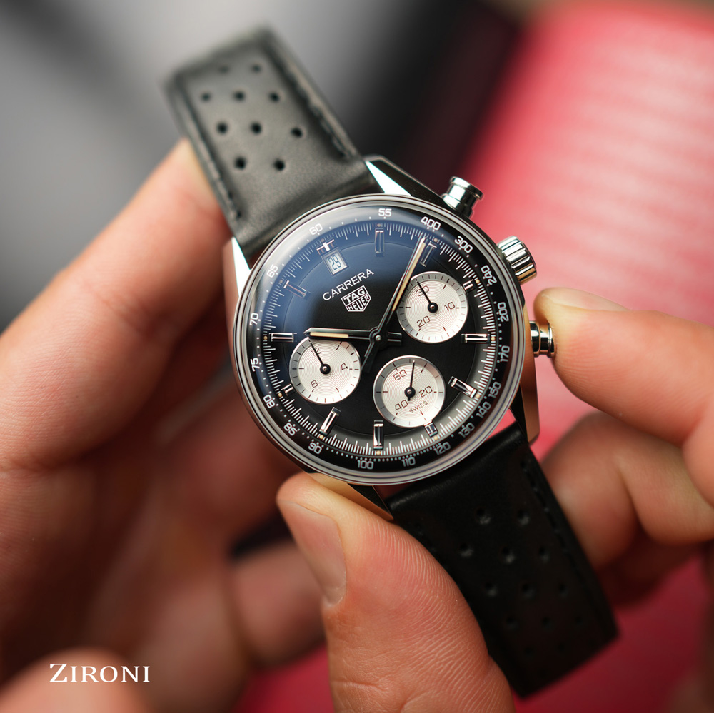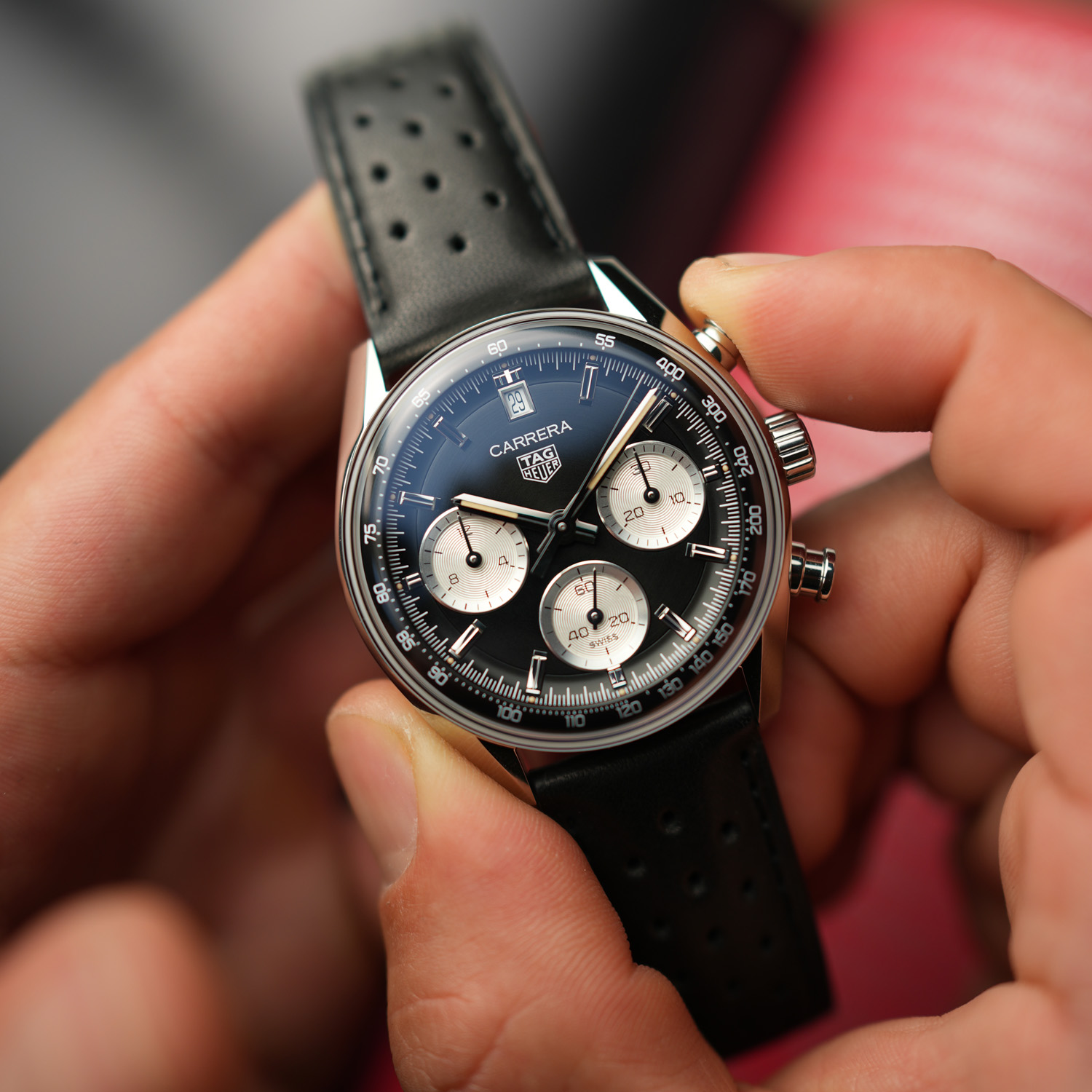 Rivisitazione del modello Reverse Panda 2447 NS, questa prestigiosa versione nera del modello TAG Heuer Glassbox da 39 mm incarna l'inconfondibile design Carrera con un tocco di modernità. Con il suo pregiato cinturino in pelle di vitello traforata, quest'orologio è decisamente pronto a osare.