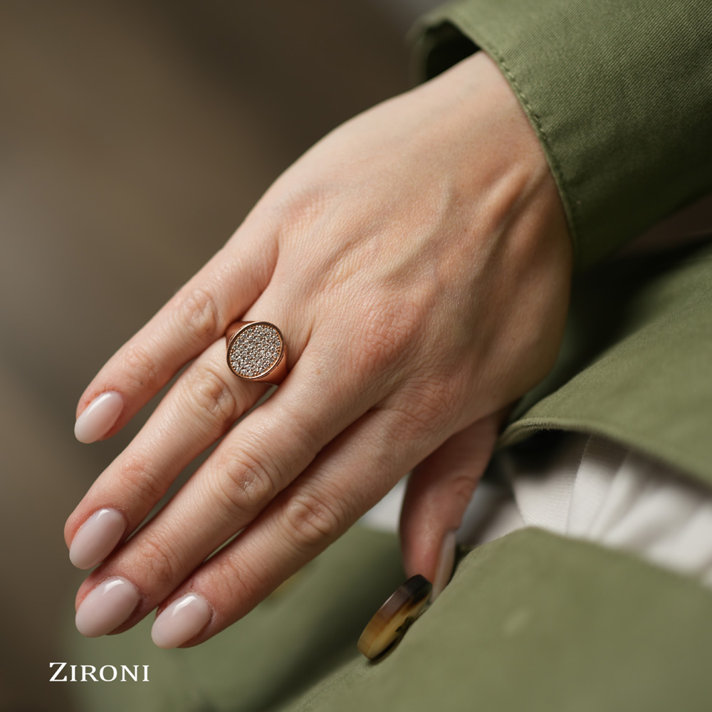 Chevalier ovale in oro rosa con diamanti (ct 0,52)
