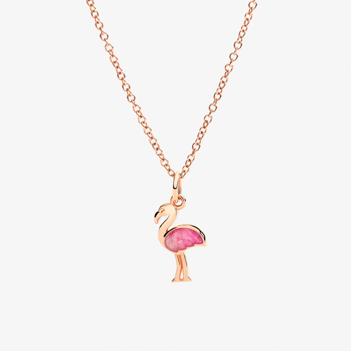 Ciondolo fenicottero in oro rosa 9K e smalto perlato rosa.