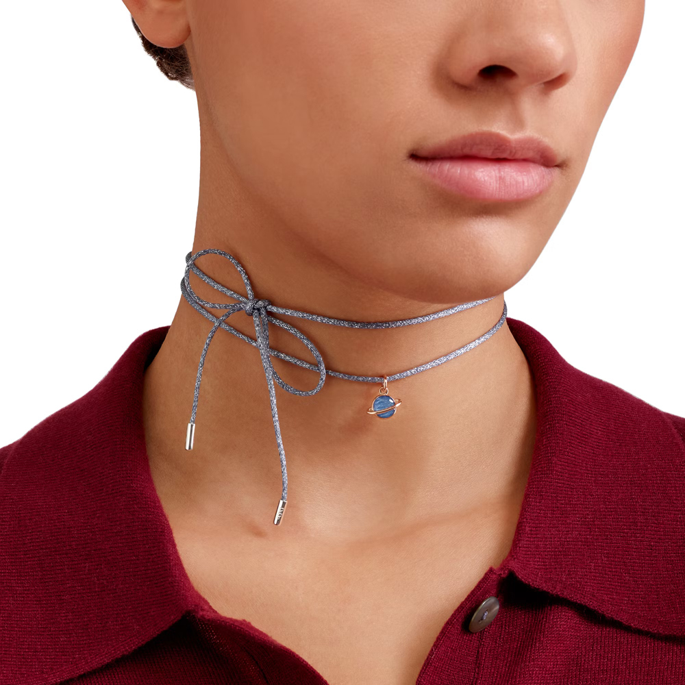 Ciondolo pianeta in oro rosa 9K e smalto glietterato blu