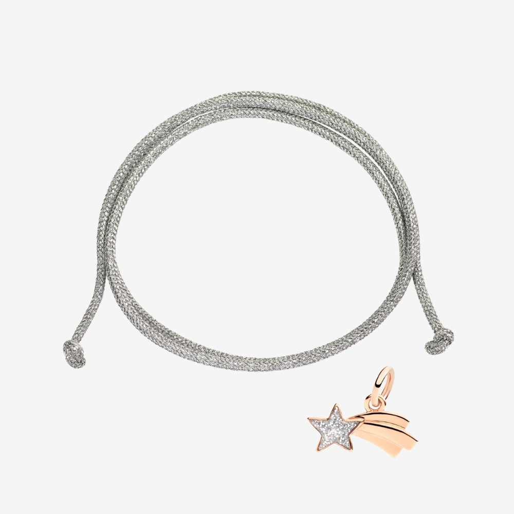 Segui la Stella Cometa. Una Collezione per le feste con un nuovo talismano ed un look più prezioso che mai: il ciondolo Stella Cometa è in oro rosa con smalto glitter che lo fa brillare di luce propria. L’orecchino ha un diamante centrale che ne enfatizza la forma e la collana una catena luminosissima, per splendere sempre.