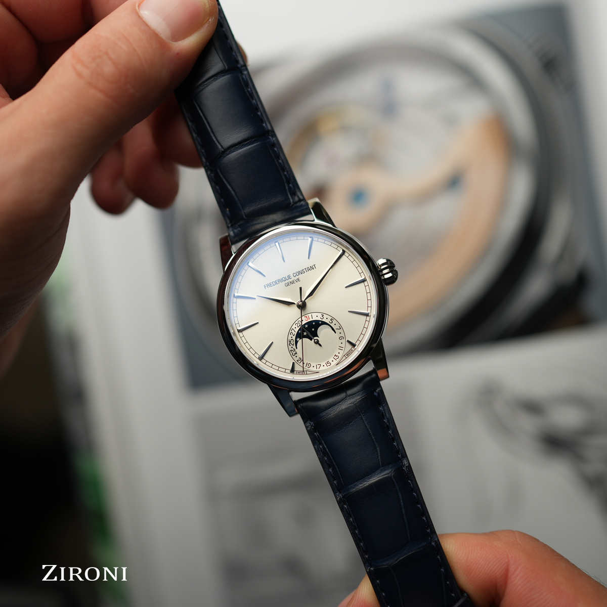 Grazie alla sua affidabilità e alle sue performance, il Classic Moonphase Date Manufacture è ormai garantito cinque anni. Una creazione rara, preziosa e precisa, molto affidabile, che si basa su un movimento dalla frequenza di 4 Hz e sviluppato da Frederique Constant ormai quasi 10 anni fa.