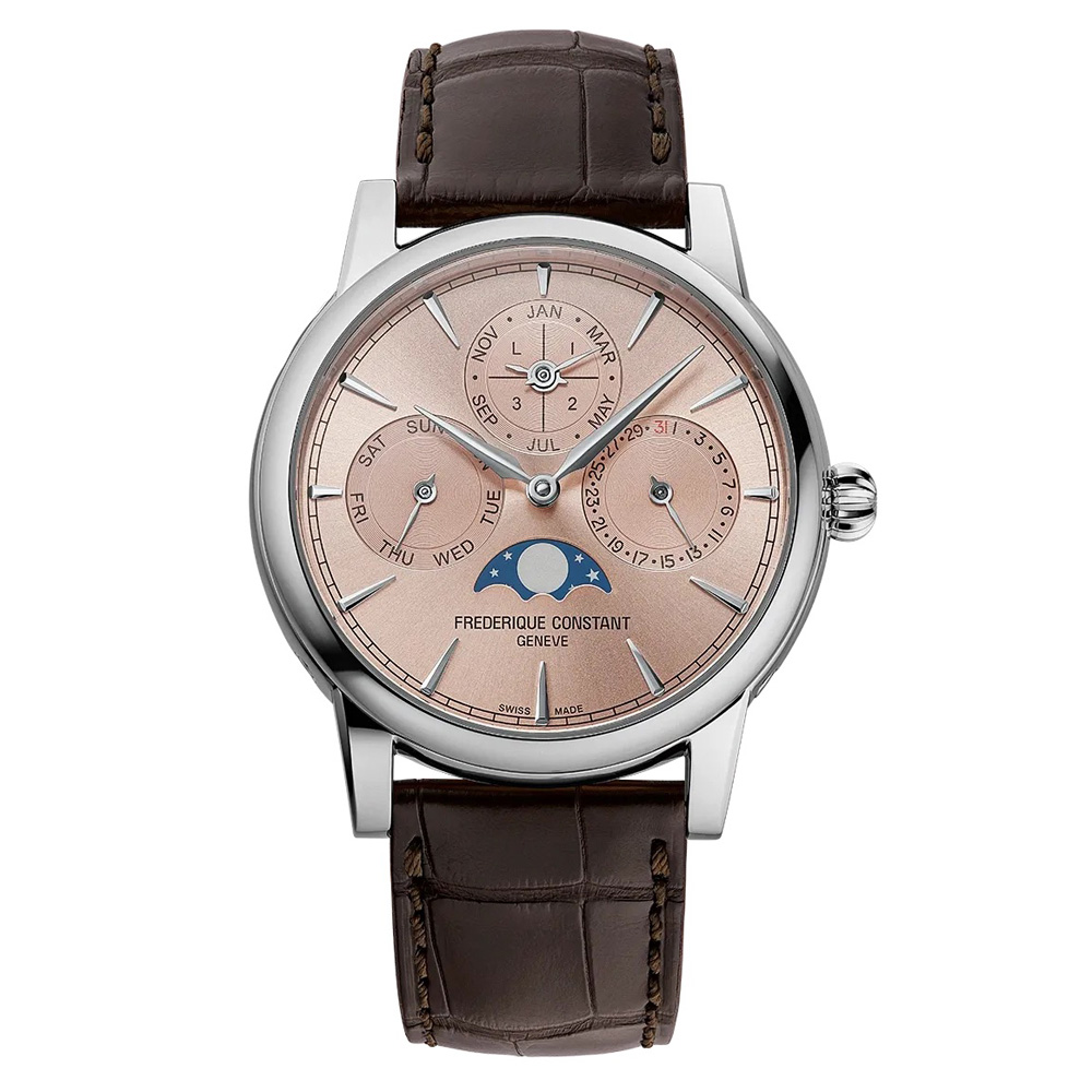 Nel 2016, al suo esordio, il Classic Perpetual Calendar Manufacture di Frederique Constant era l’orologio con calendario perpetuo più conveniente del mercato. Oggi, nella sua nuova versione, questo orologio si spinge oltre in termini di qualità, finitura dei componenti e caratteristiche tecniche. Il quadrante, realizzato in color salmone, uno dei colori preferiti dai collezionisti, si sposa ad una cassa realizzata nel nuovo diametro da 40 mm., che a sua volta ospita il nuovo calibro di Manifattura FC-776, che vanta una riserva di carica di 3 giorni. Questo nuovo calibro è il 34° sviluppato internamente dalla manifattura di Ginevra.