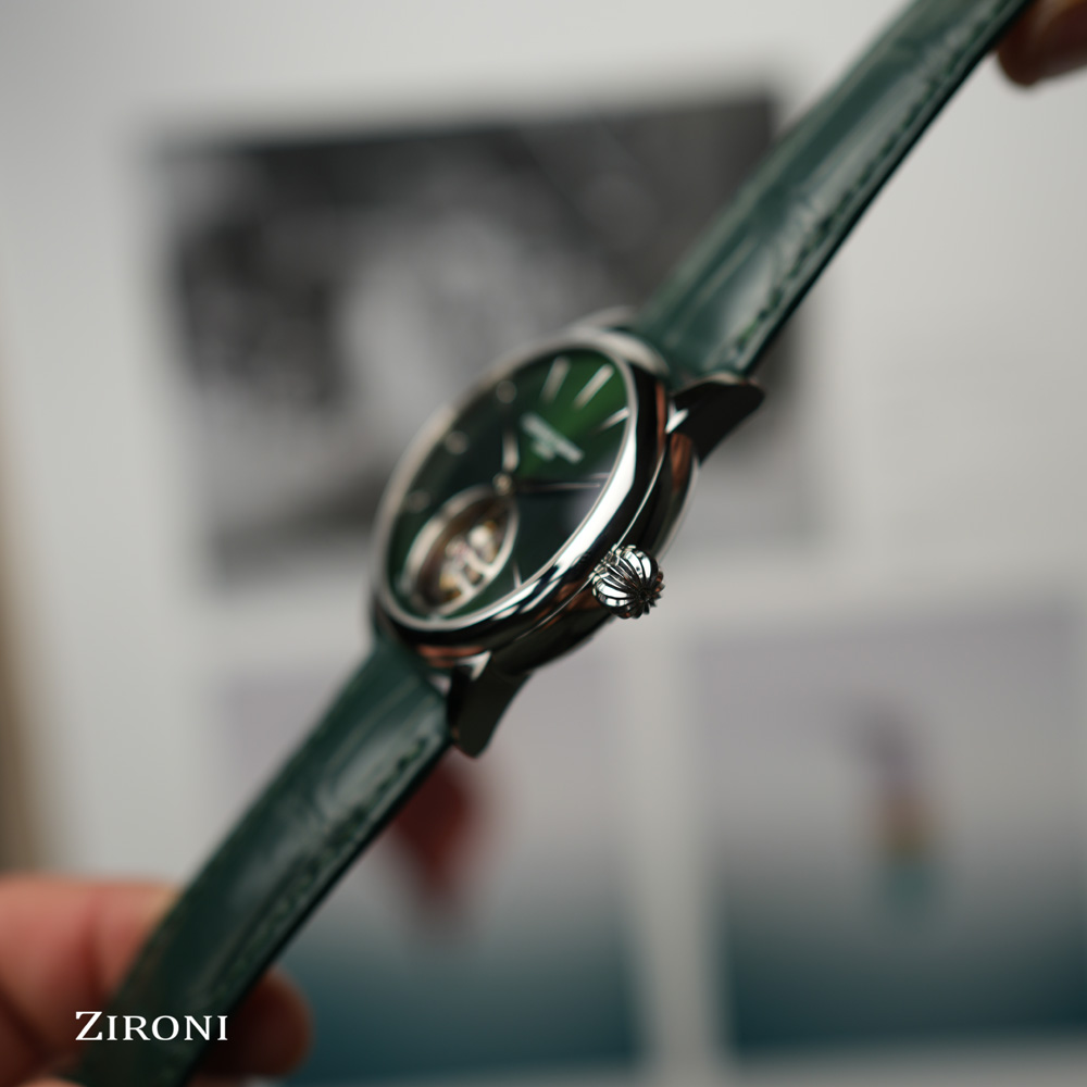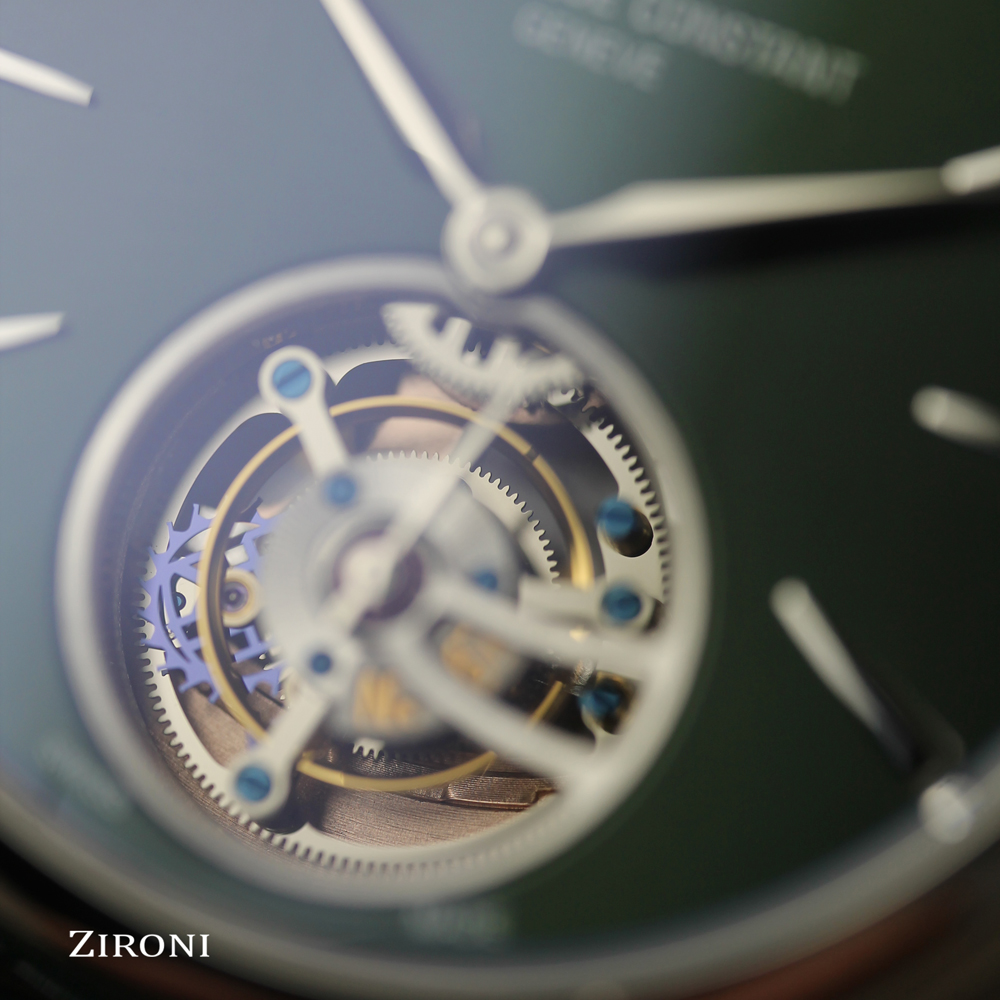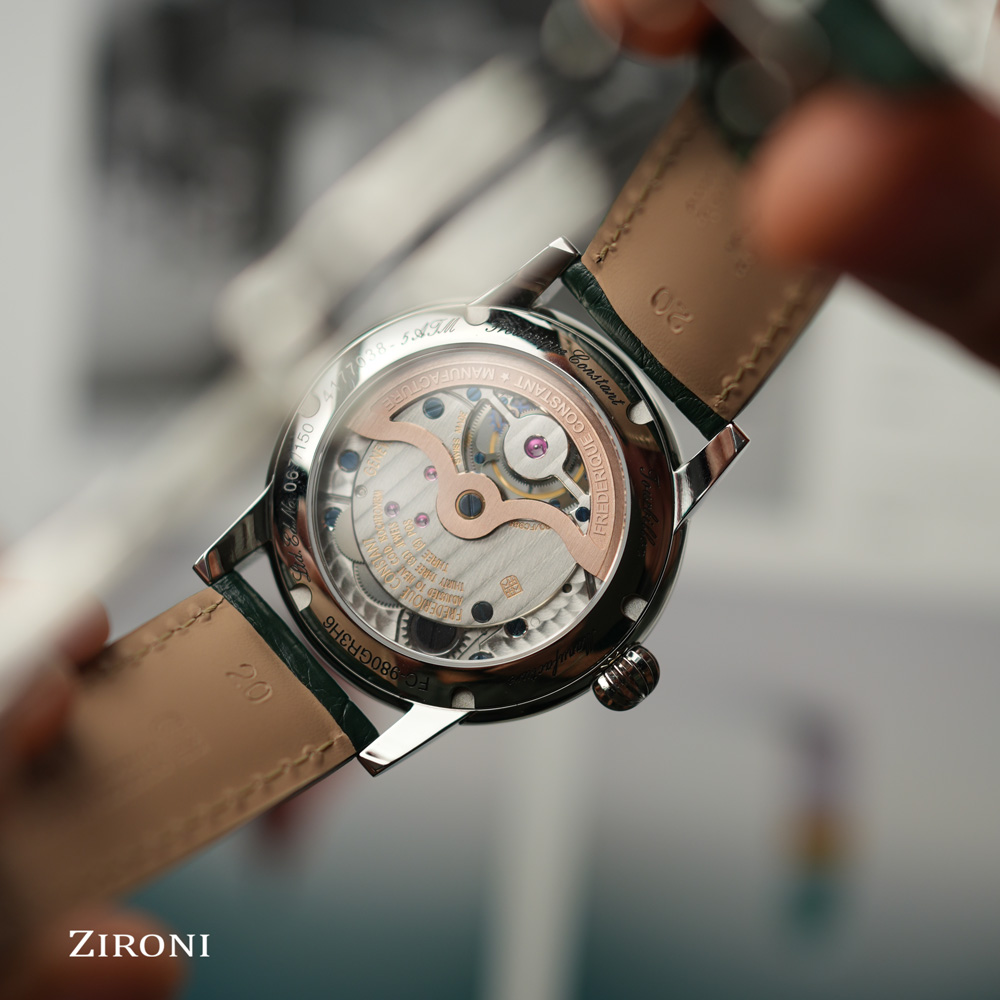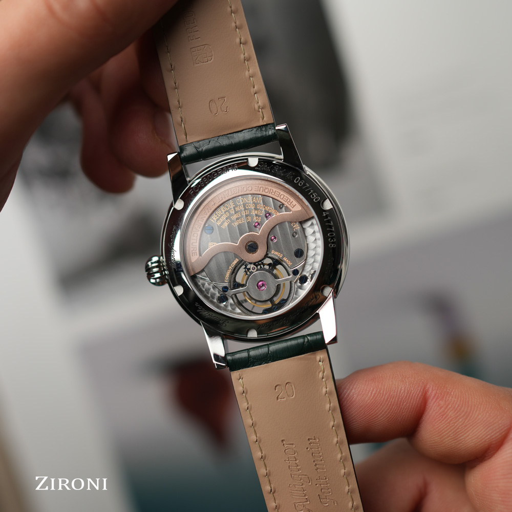 Prodotto in soli 150 esemplari, questo classic tourbillon manufacture si distingue per la cassa in acciaio da 39 mm, il quadrante verde a raggi di sole e il cinturino abbinato. al suo interno batte il calibro automatico fc-980-4, sviluppato e assemblato in svizzera