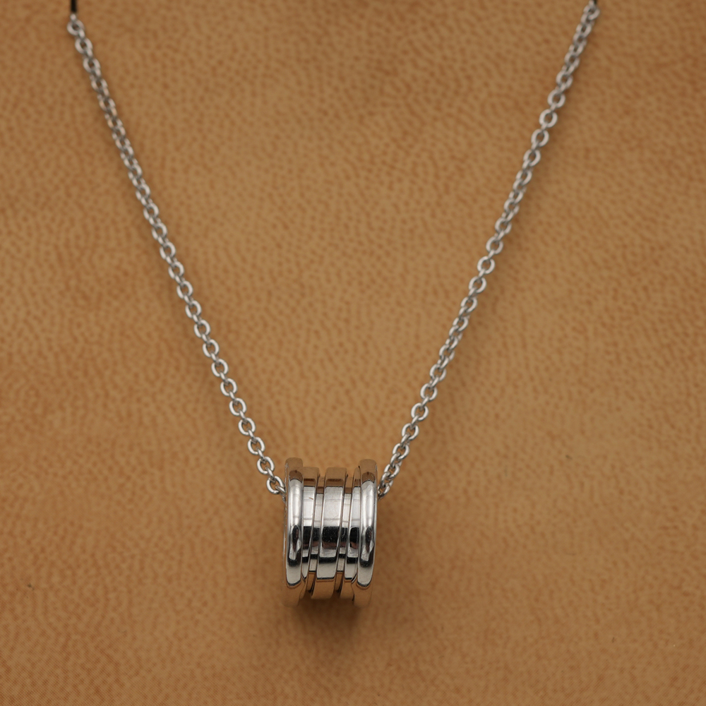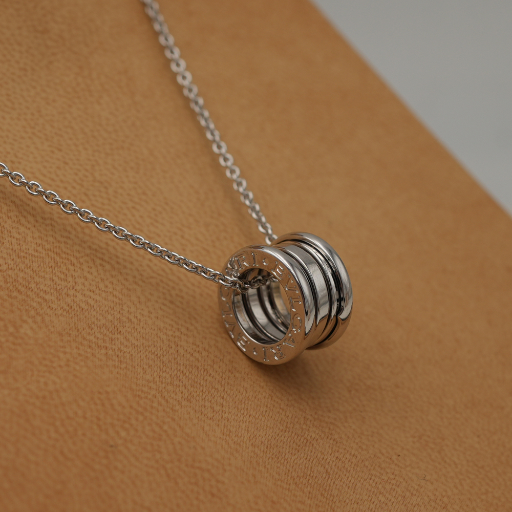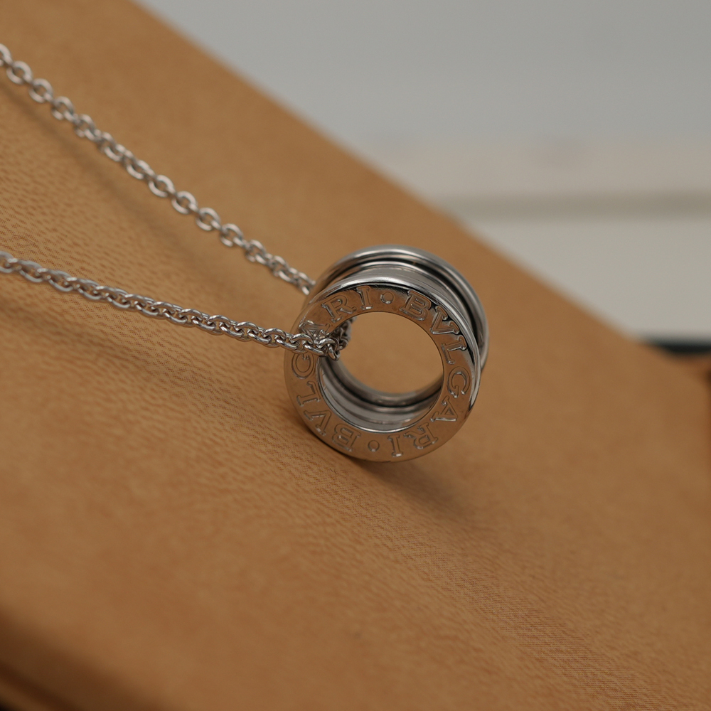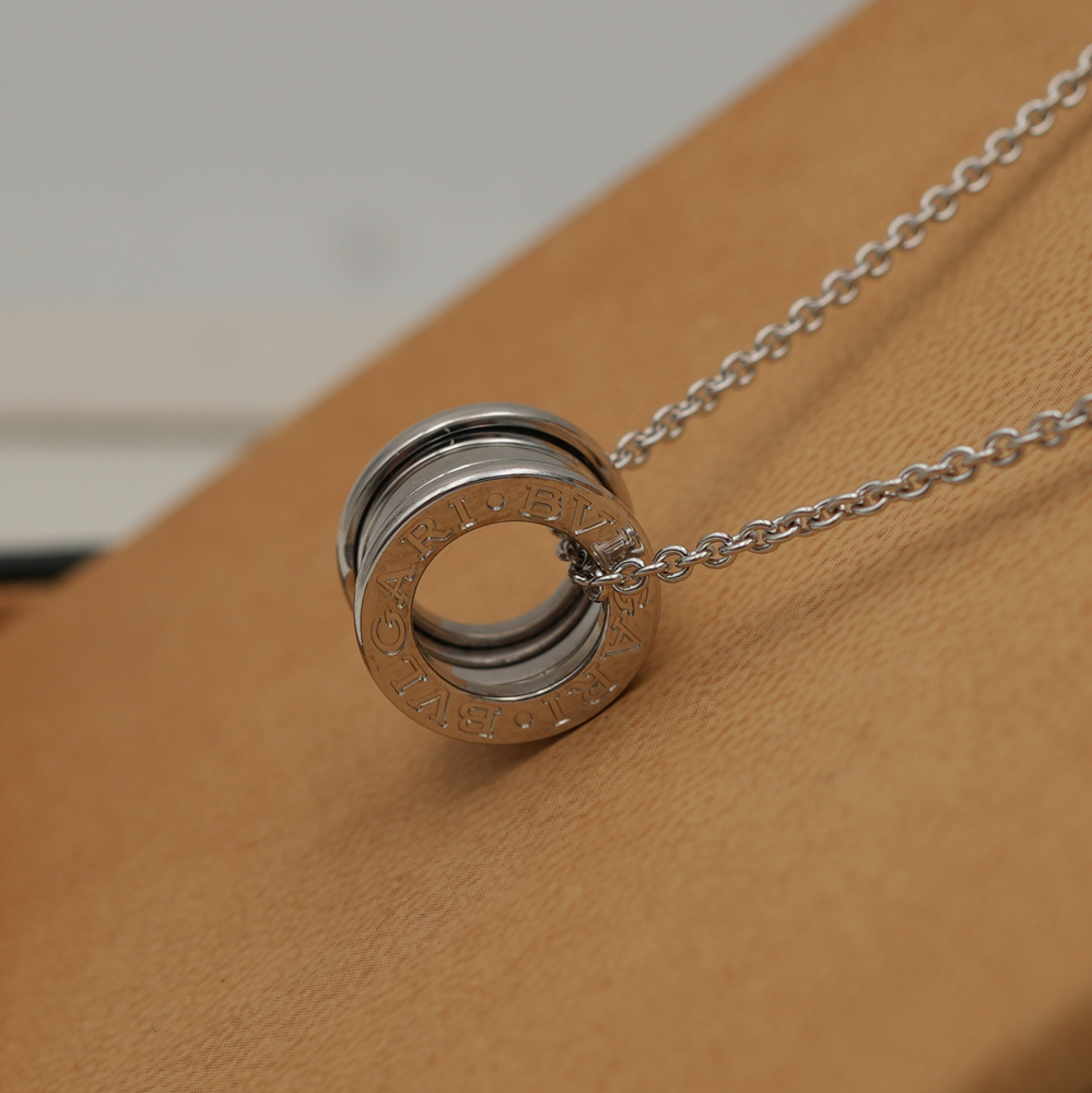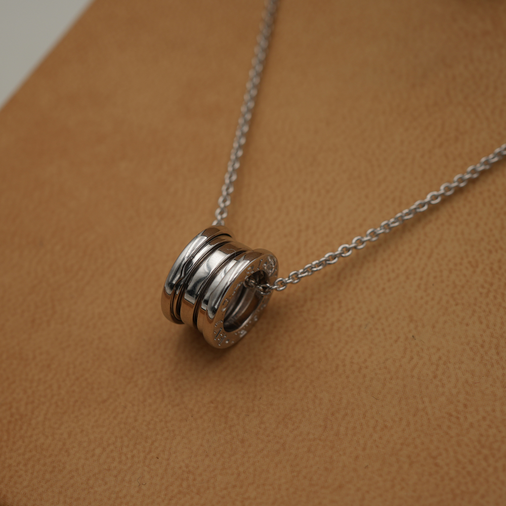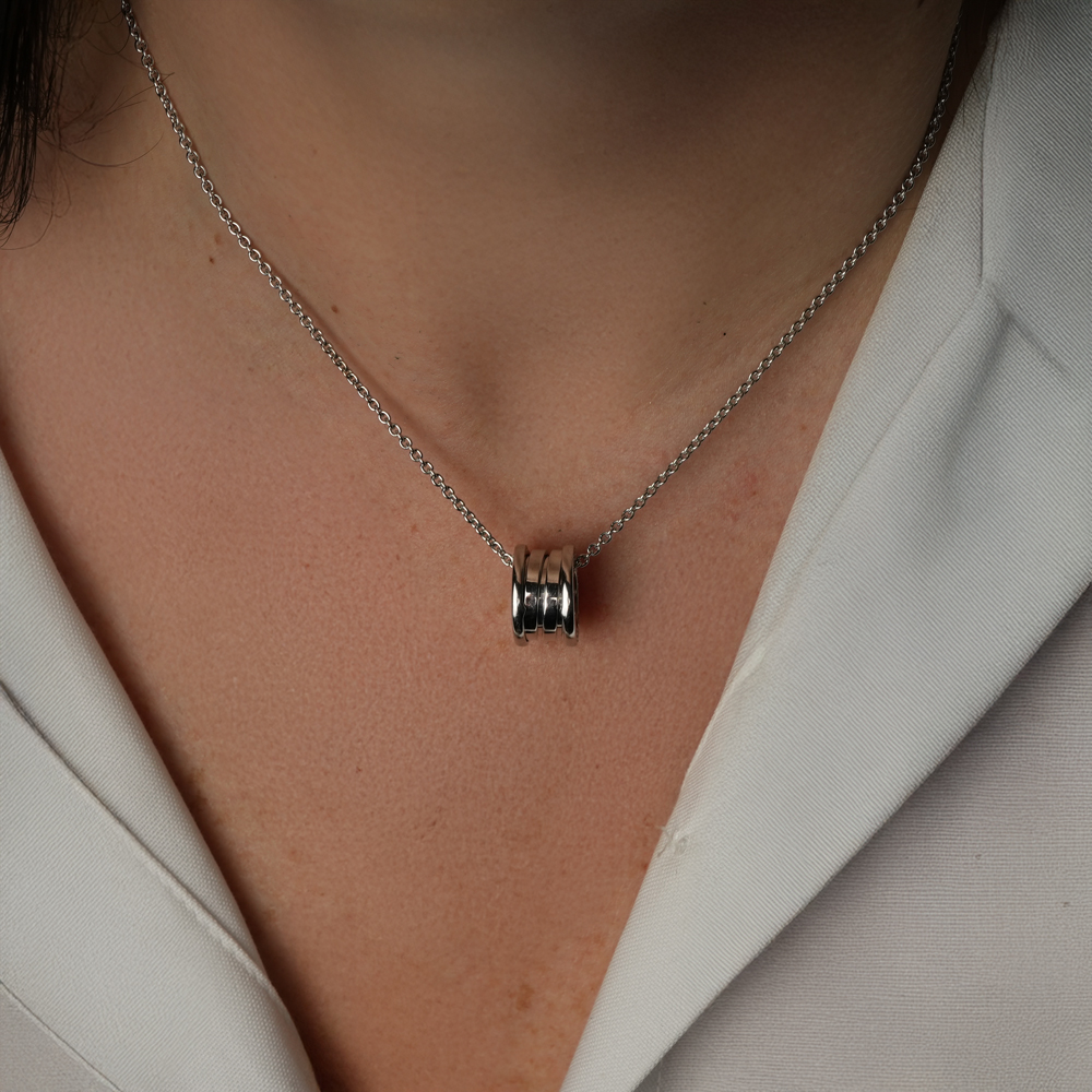 Vera icona del design contemporaneo sin dal 1999, B.zero1 sfida ogni tendenza e convenzione con il suo perfetto connubio tra ispirazione romana, design industriale e maestria all’avanguardia. Realizzata in oro bianco 18 kt, la collana con catena e pendente unisce alle perfette geometrie dell’architettura romana uno stile dalla moderna e inconfondibile eleganza. Una sublime attestazione del talento creativo di Bvlgari e della sua incessante ricerca dell’innovazione.