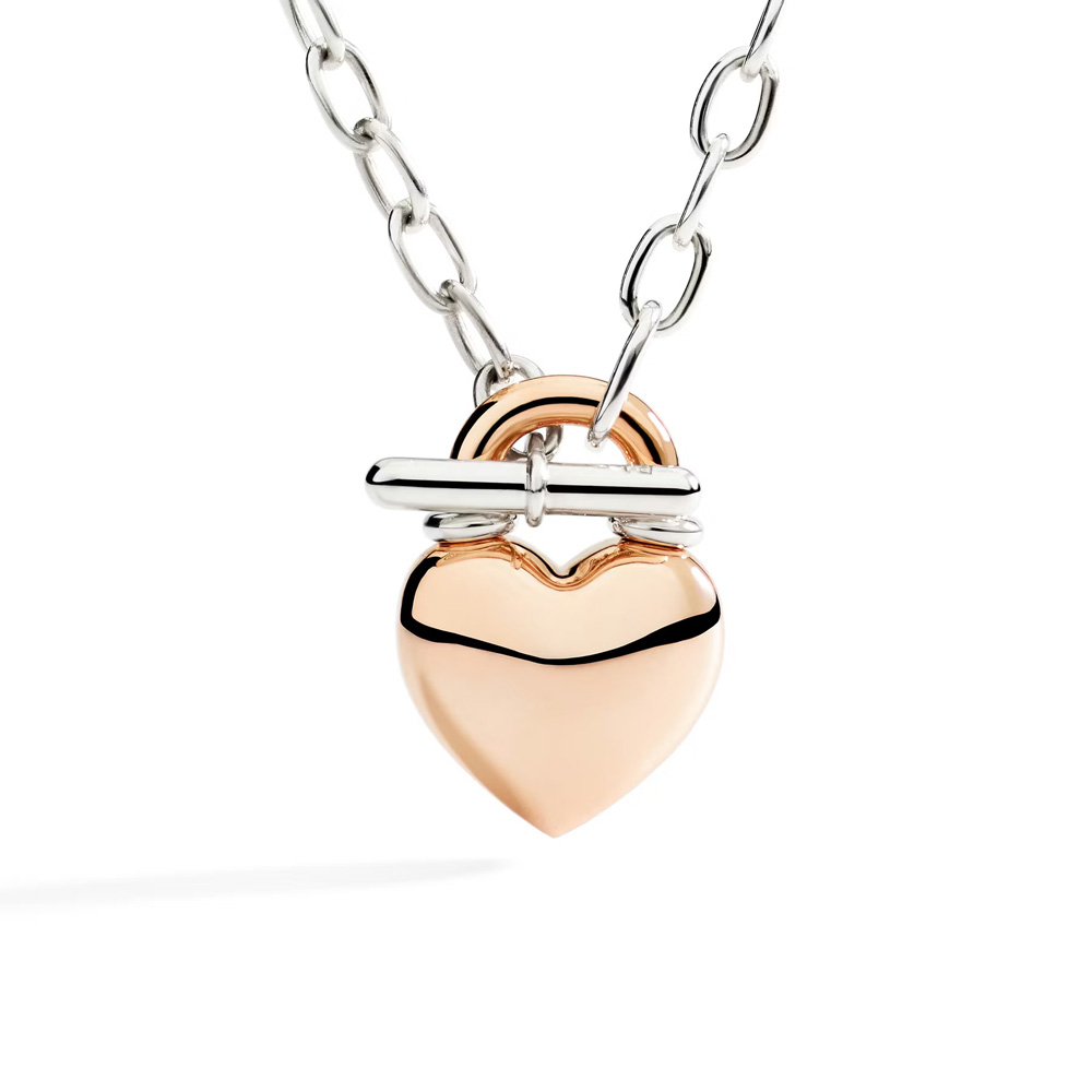 Collana Cuore in oro rosa 9K e catena in argento 925
