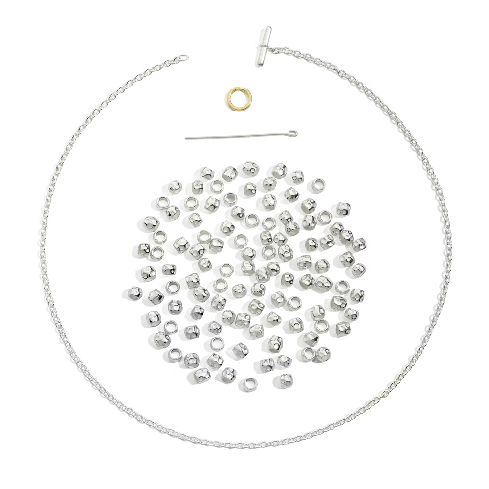 Collana granelli in argento 925 con catena in argento 925 e Anello brisè in oro giallo 18K