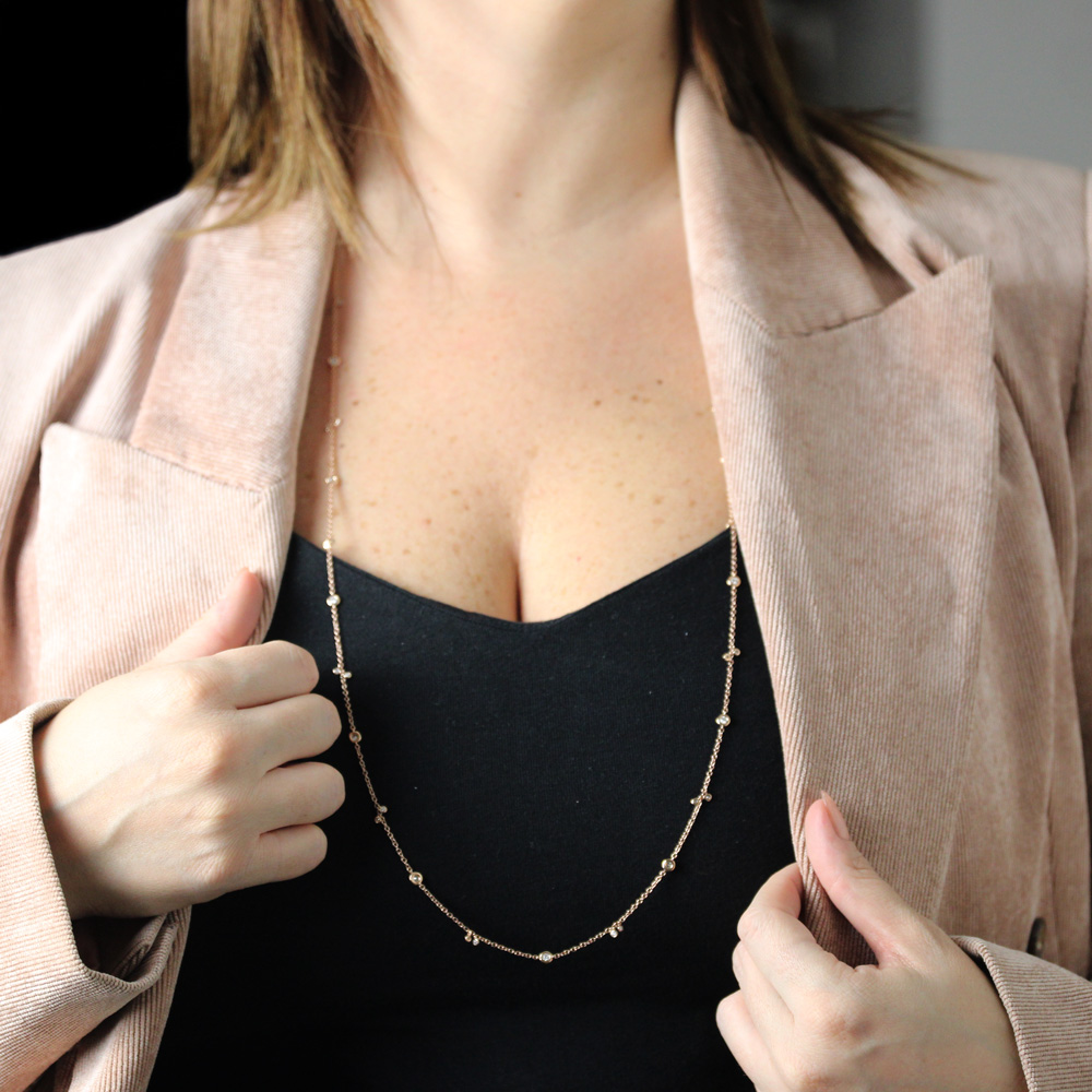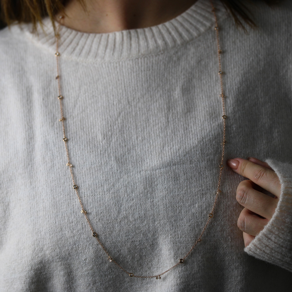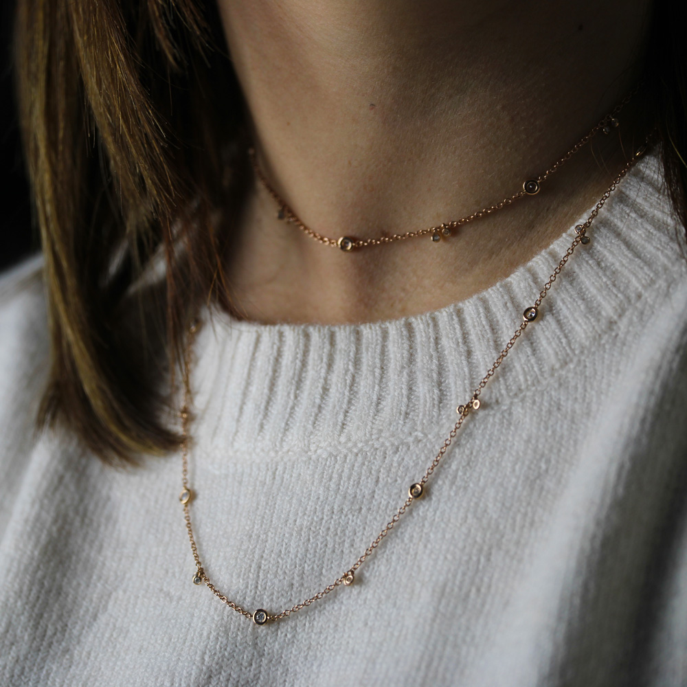 Collana in oro rosa 18K e diamanti taglio brillante (1,21 ct - G SI) - lunghezza 90 cm