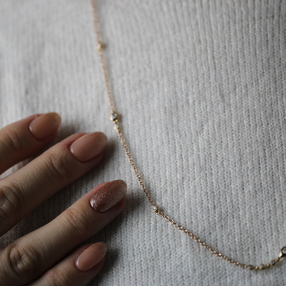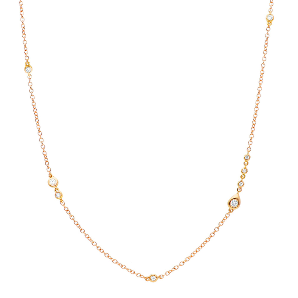 Collana lunga in oro rosa 18K e diamanti taglio brillante (0,60 ct - G SI) - lunghezza 70 cm