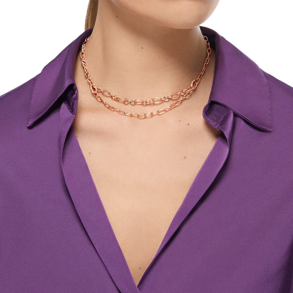Collana essentials con 2 maglie apribili in argento dorato oro rosa 18K.