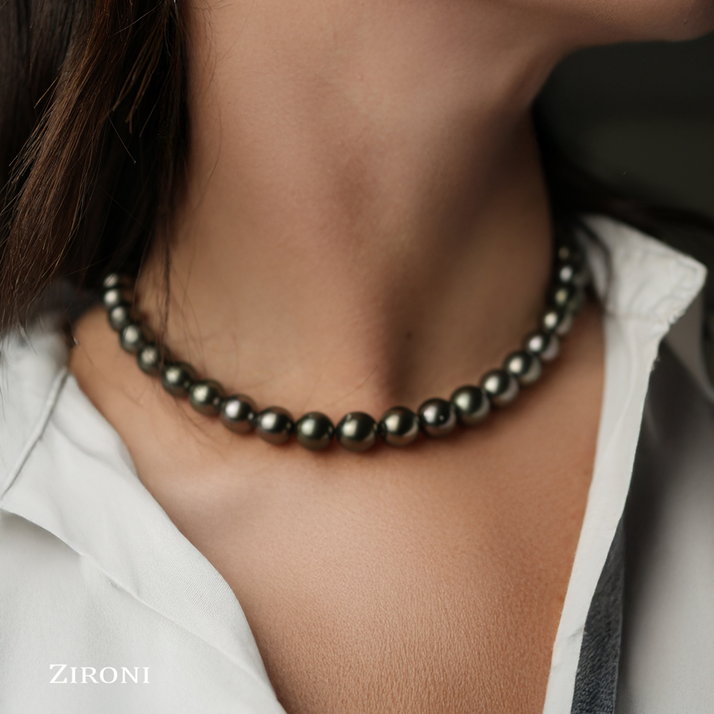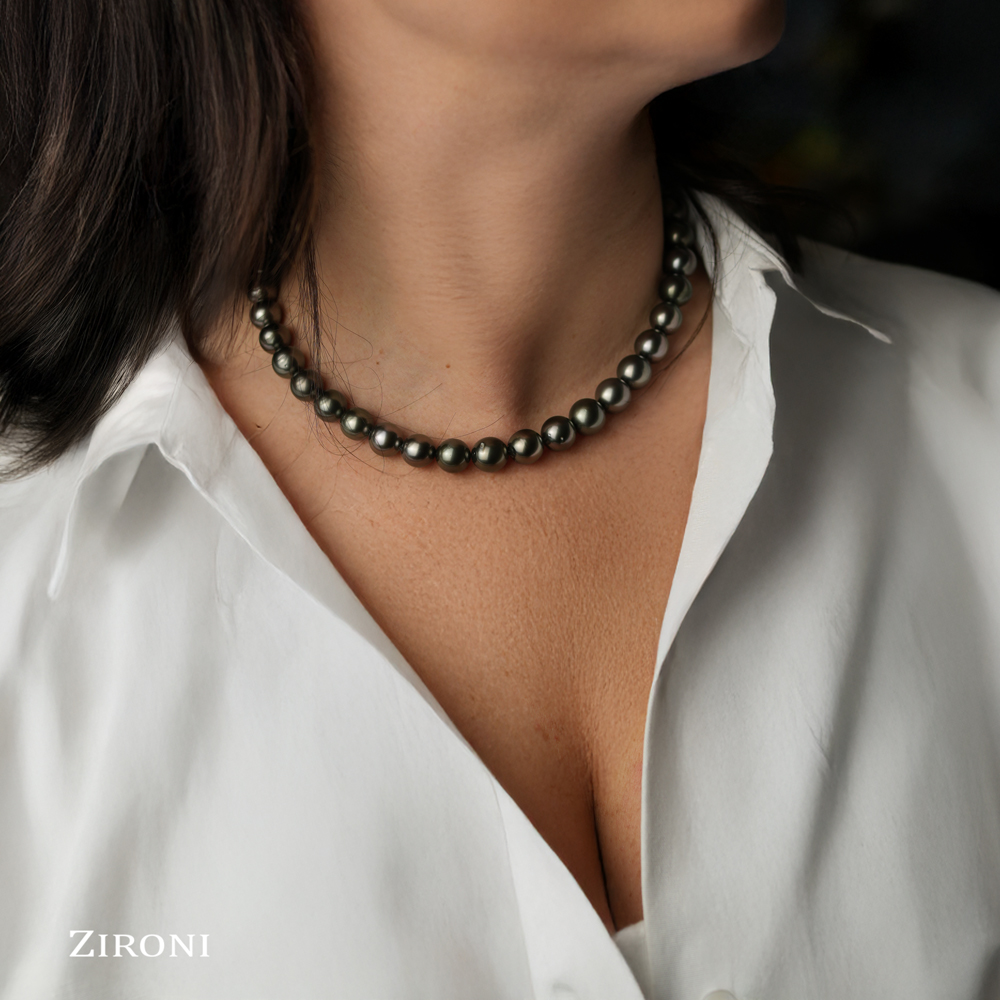 Collana perle Tahiti mm (10/11.5 mm) con chiusura in oro bianco 18K