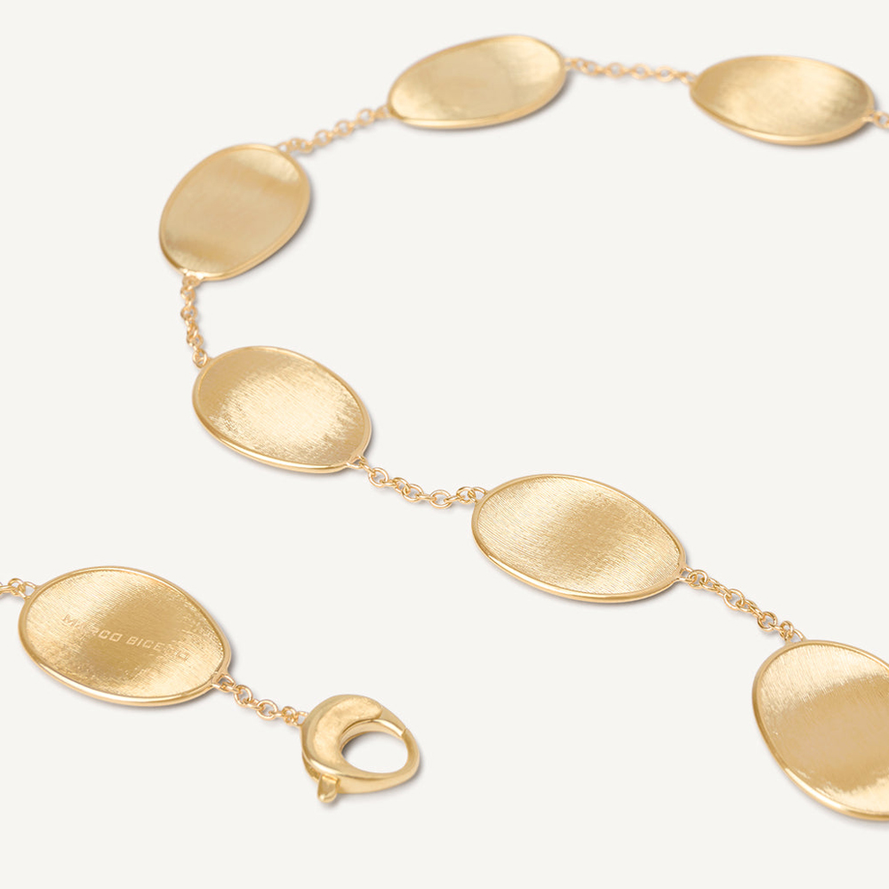 Ispirato al fascino della natura, questa collana girocollo è composta dal susseguirsi regolare di leggere foglie in oro giallo 18kt, finemente incise a mano con l'antica tecnica del bulino millerighe e intervallate da una sottile catena. Perfetta per completare il look e dare un tocco di luce a qualsiasi outfit.