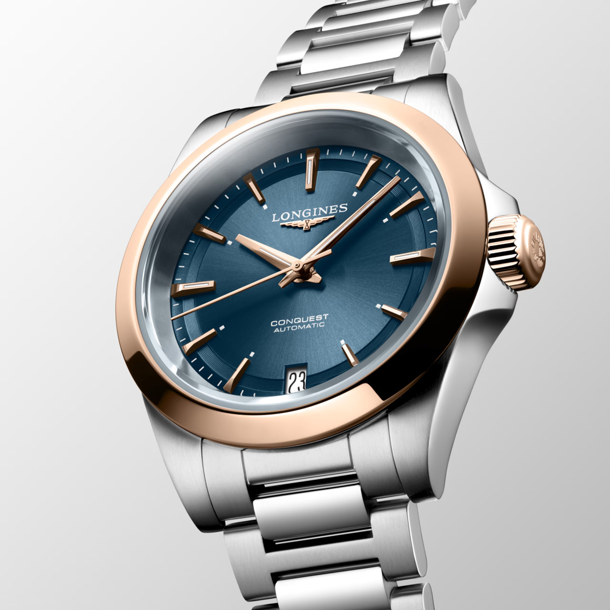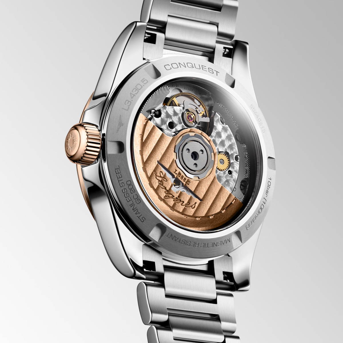 CONQUEST, L3.430.5.92.6, orologio Automatico, Ø 34.00 mm, Acciaio con maglia centrale rivestita in oro rosa 18 carati, 200 micron.
