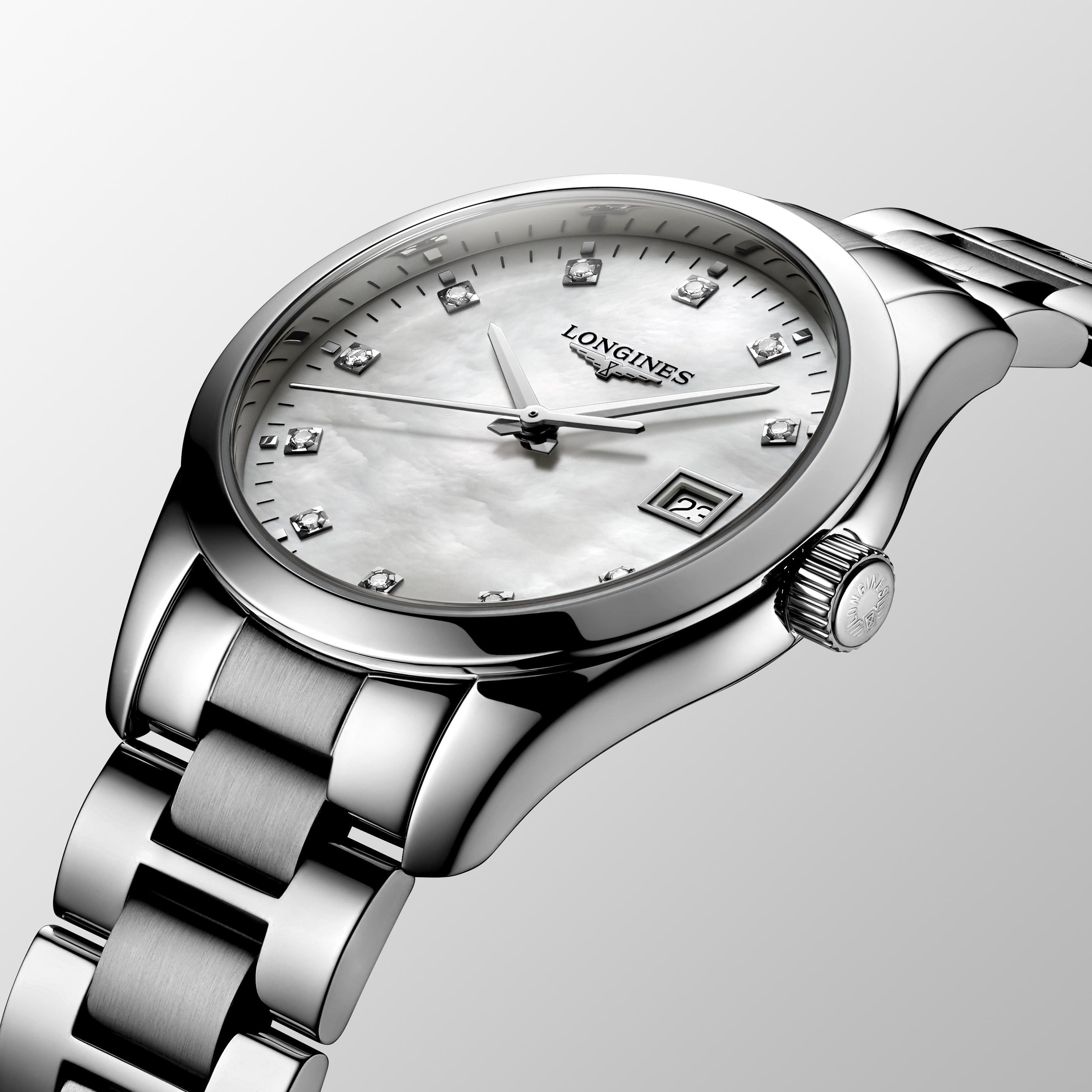 L’orologio Conquest Classic coniuga sapientemente elementi di modernità alla proverbiale raffinatezza del marchio Longines. Eleganti e ricercate, le ultime creazioni della linea sfoggiano un carattere decisamente contemporaneo, senza rinunciare a una marcata femminilità.