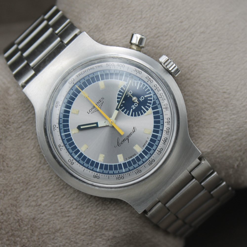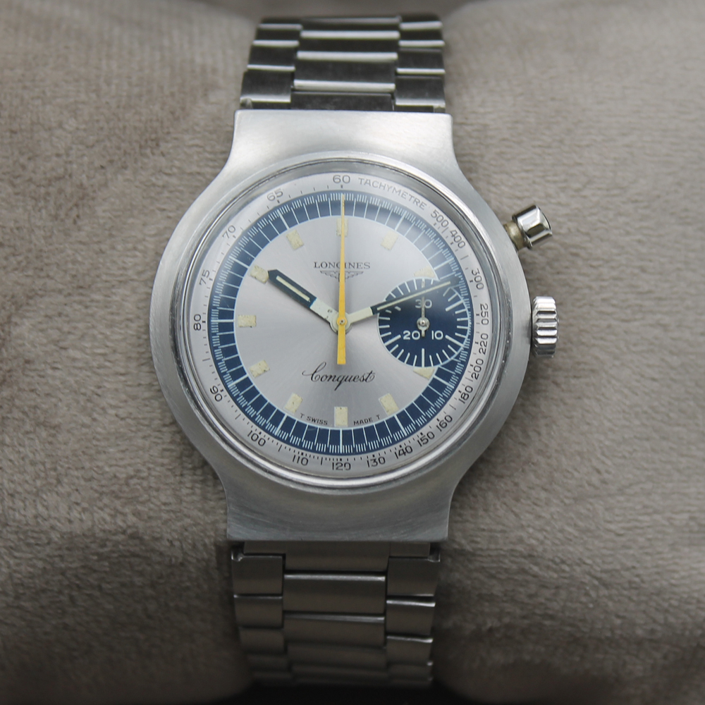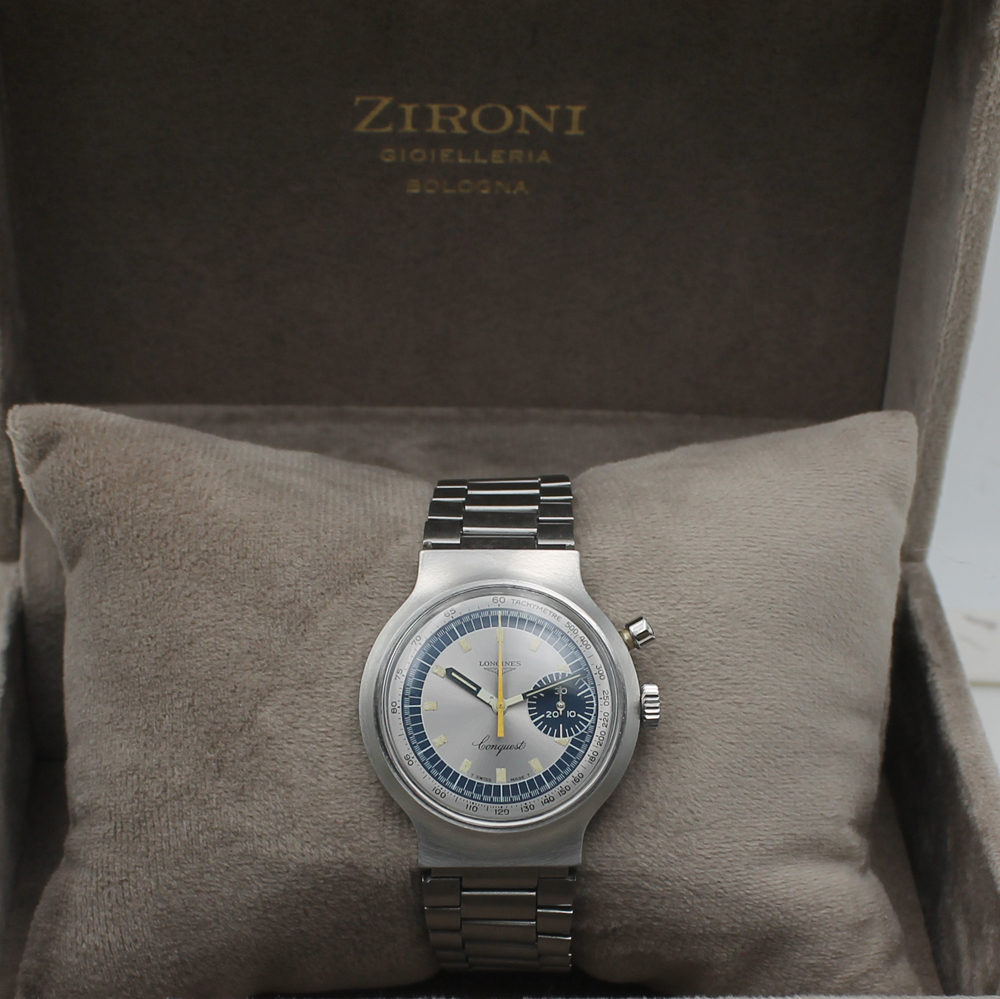 Il Longines Conquest Monopulsante ref. 8614-1 è un cronografo di lusso prodotto nei primi anni '70, che montava il calibro a carica manuale 334 (base Valjoux). Celebre per il suo legame con i Giochi Olimpici di Monaco del 1972, presenta un singolo pulsante per le funzioni crono, rappresentando un pezzo da collezione apprezzato.