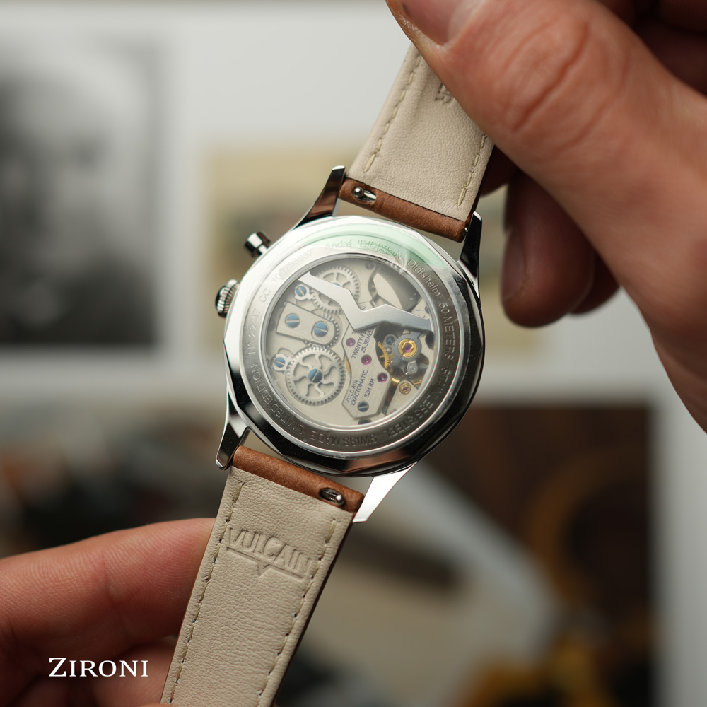 All'interno della cassa batte il calibro Vulcain V-10, evoluzione dell'originale