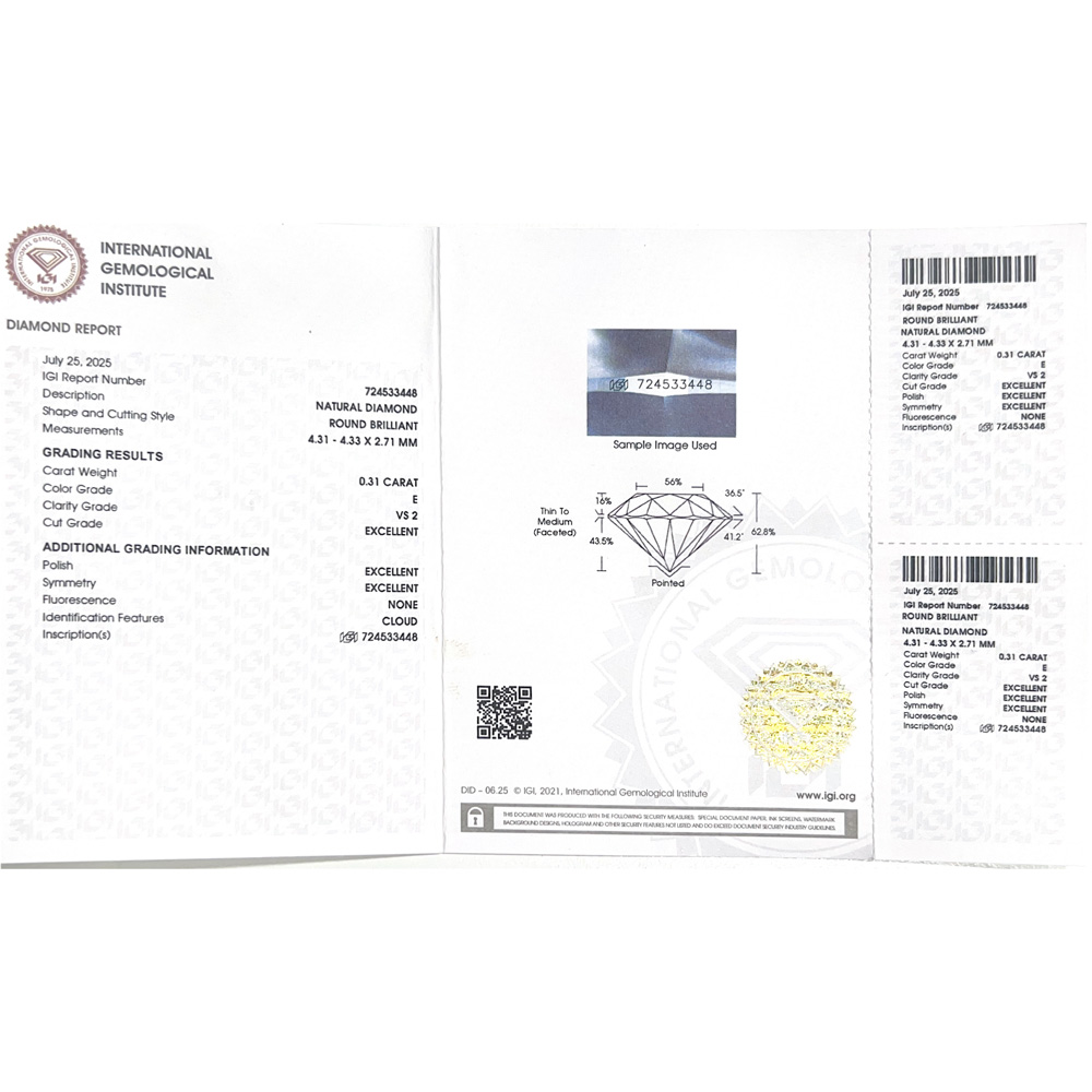 Diamante in blister certificato IGI (ct 0,31 - E - VS2)