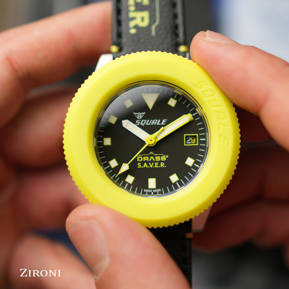Volendosi affidare esclusivamente a professionisti di alto grado per la creazione di ogni elemento di fornitura ai loro equipaggi, Drass ha deciso di affidare a Squale il compito di creare un segnatempo adatto agli operatori sommergibilisti, in grado di soddisfare le esigenze tecniche e onorare la sua grande storia di professionalità che è attualmente in fornitura all’azienda leader nelle tecnologia sottomarine.