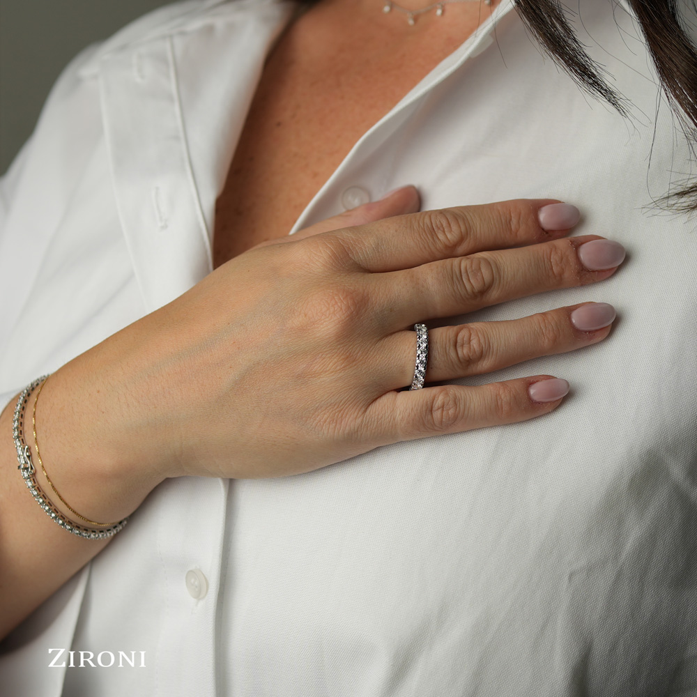 Un classico senza tempo, che ora proponiamo in una nuova veste. Questa eternelle in oro bianco 18K nasce direttamente dalla verga d’oro bianco, non da fusione. Questo le conferisce una resistenza superiore e una durata che accompagna davvero tutta la vita.