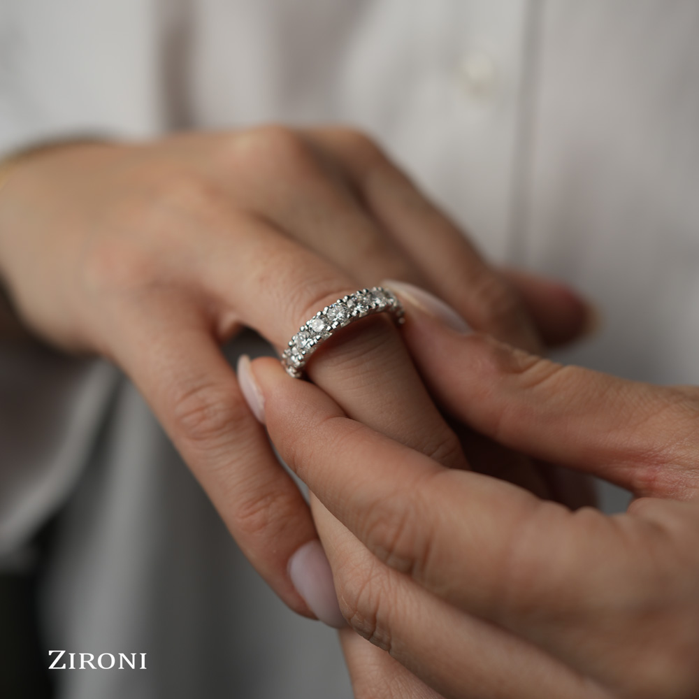 Un classico senza tempo, che ora proponiamo in una nuova veste. Questa eternelle in oro bianco 18K nasce direttamente dalla verga d’oro bianco, non da fusione. Questo le conferisce una resistenza superiore e una durata che accompagna davvero tutta la vita.