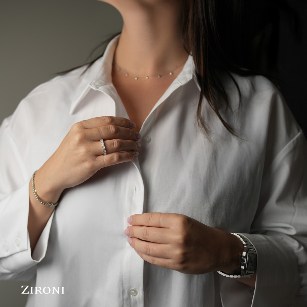 Un classico senza tempo, che ora proponiamo in una nuova veste. I 22 diamanti taglio marquise da 0,10 ct per un totale di 2,21 ct (F - VS) sono stati scelti e calibrati con estrema precisione, così la montatura risulta perfettamente regolare, comoda e più facile da mantenere pulita.