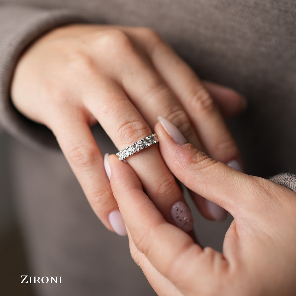 Un anello eternity con diamanti celebra l’amore che non ha inizio né fine: ogni pietra rappresenta un momento prezioso della vostra storia.