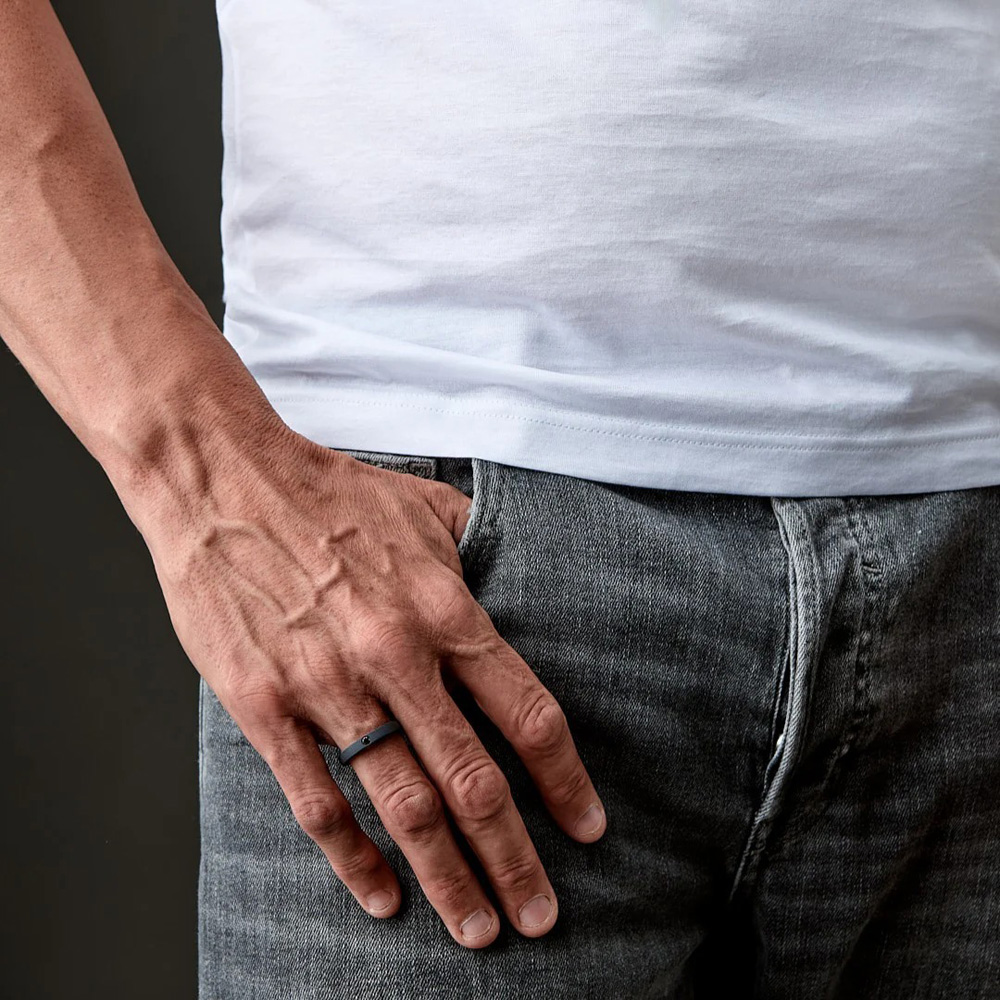 Fede piatta in titanio con diamante nero
