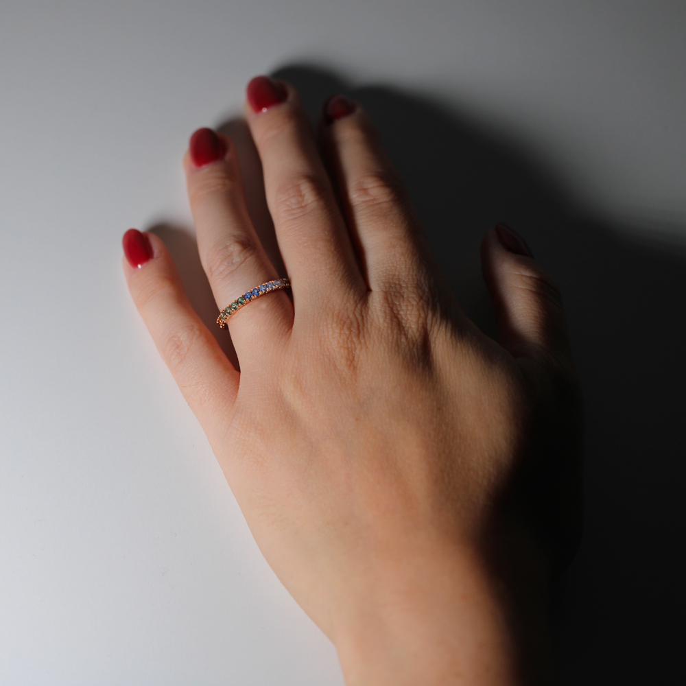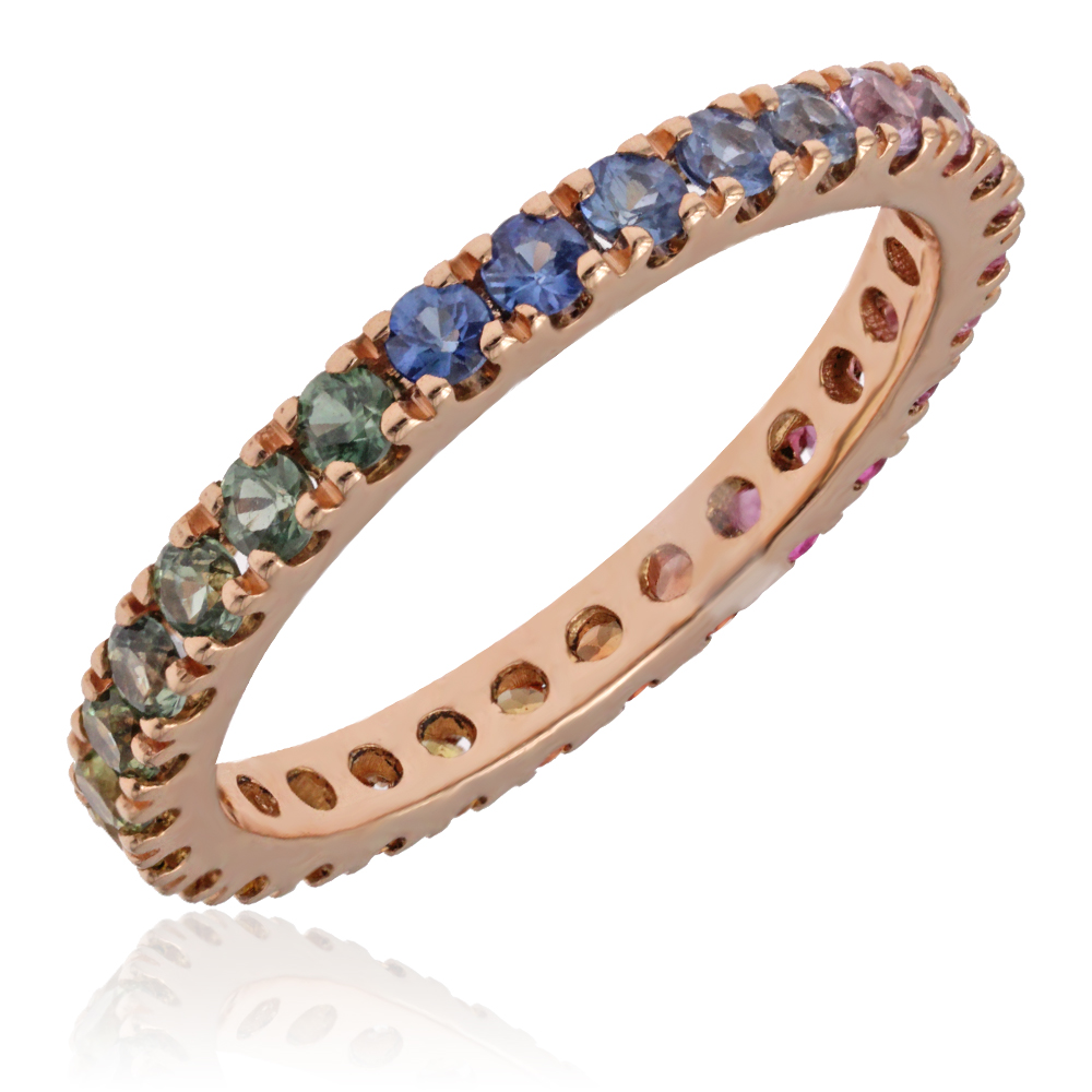 Fedina eternity in oro rosa con zaffiri multicolore - 2 mm