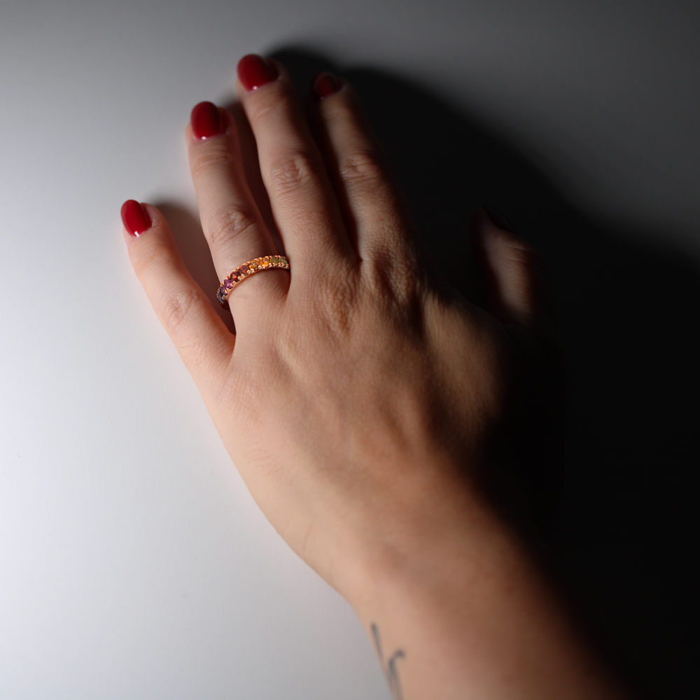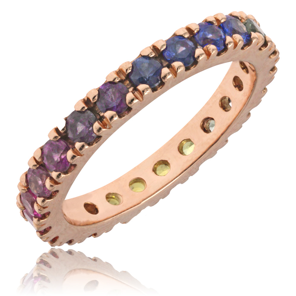 Fedina eternity in oro rosa con zaffiri multicolore - 2,5 mm