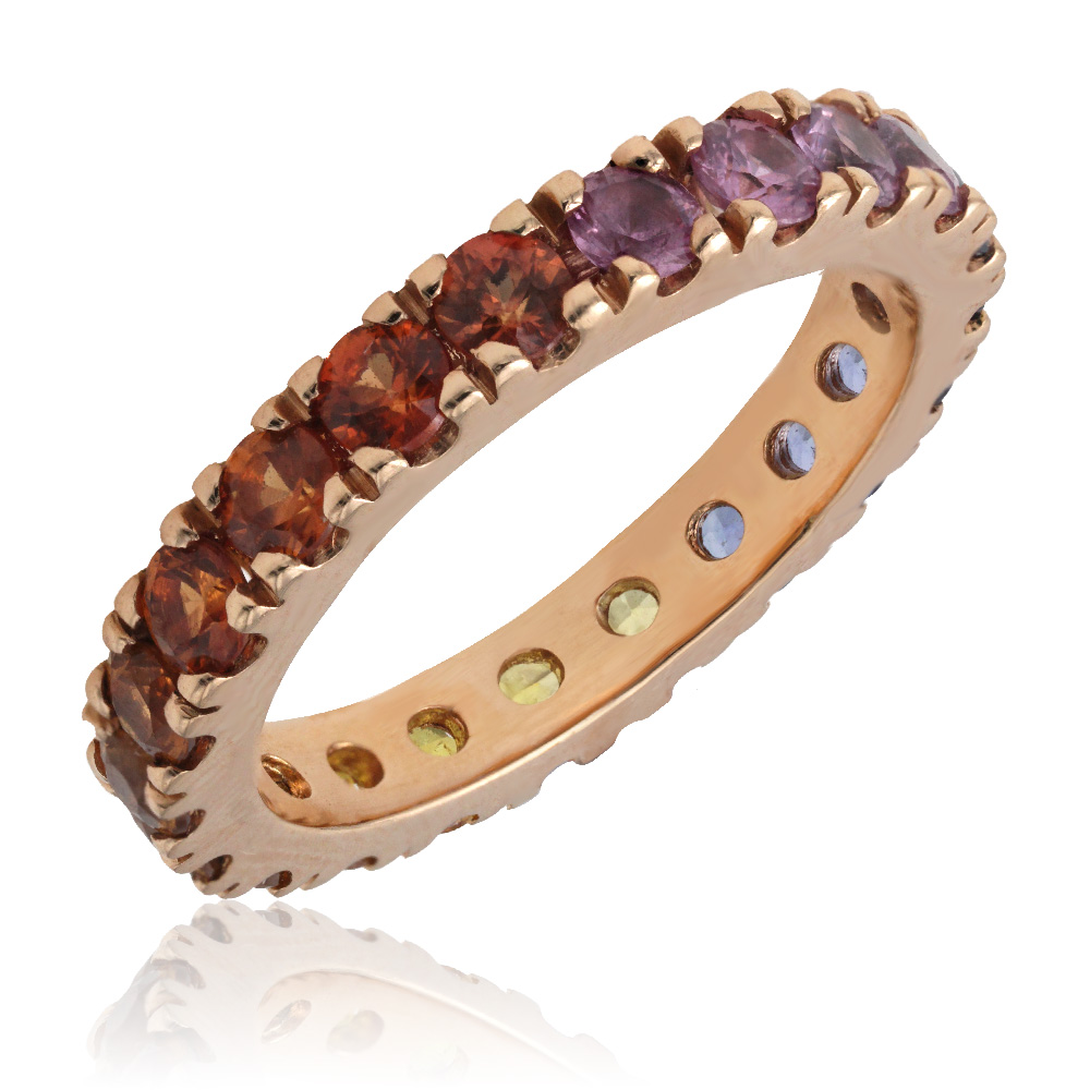 Fedina eternity in oro rosa con zaffiri multicolore - 3 mm