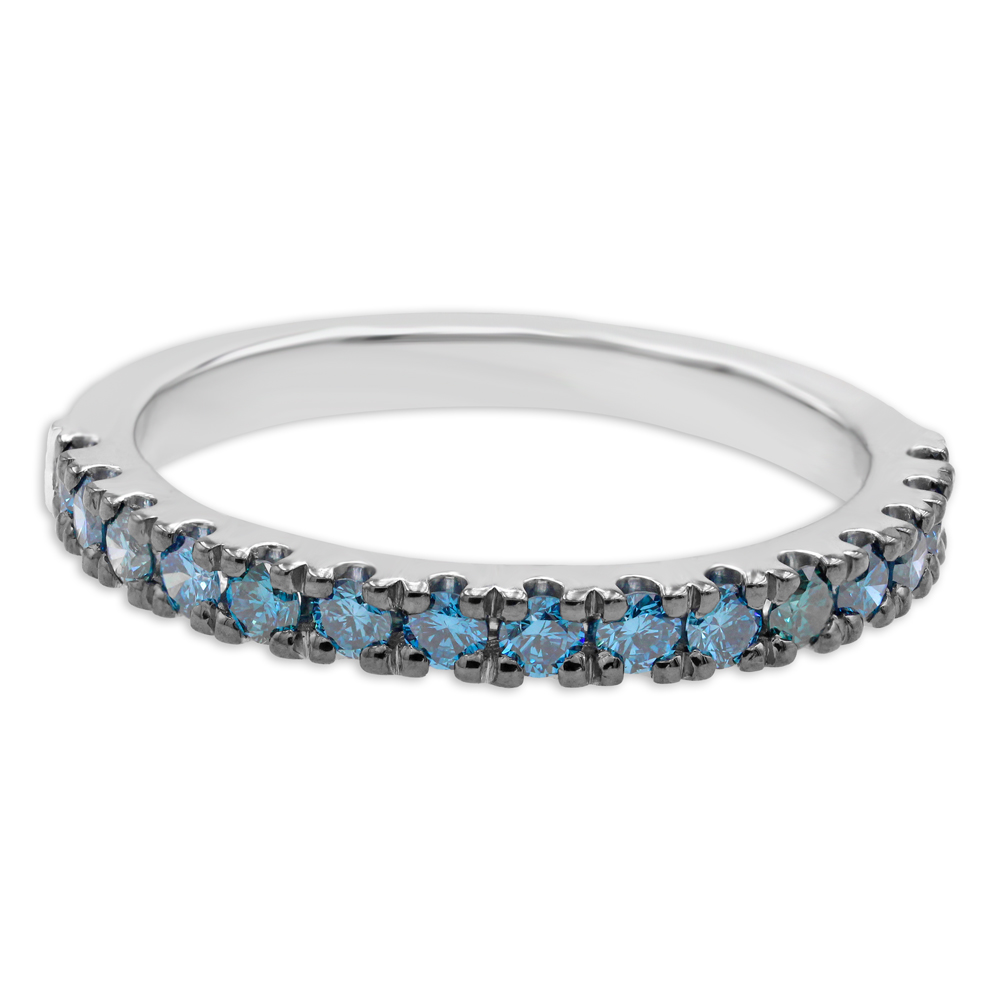 Fedina in oro bianco 18K con diamanti blu taglio brillante - spessore 2,50 mm