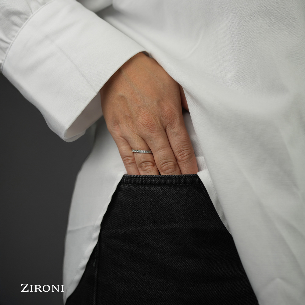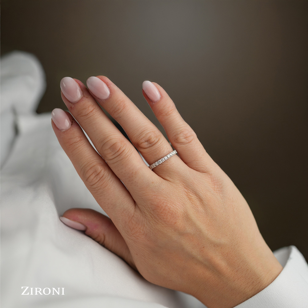 I 15 diamanti taglio brillante da 0,04 ct (D/E - SI) sono stati scelti e calibrati con estrema precisione, così la montatura risulta perfettamente regolare, comoda e più facile da mantenere pulita.
