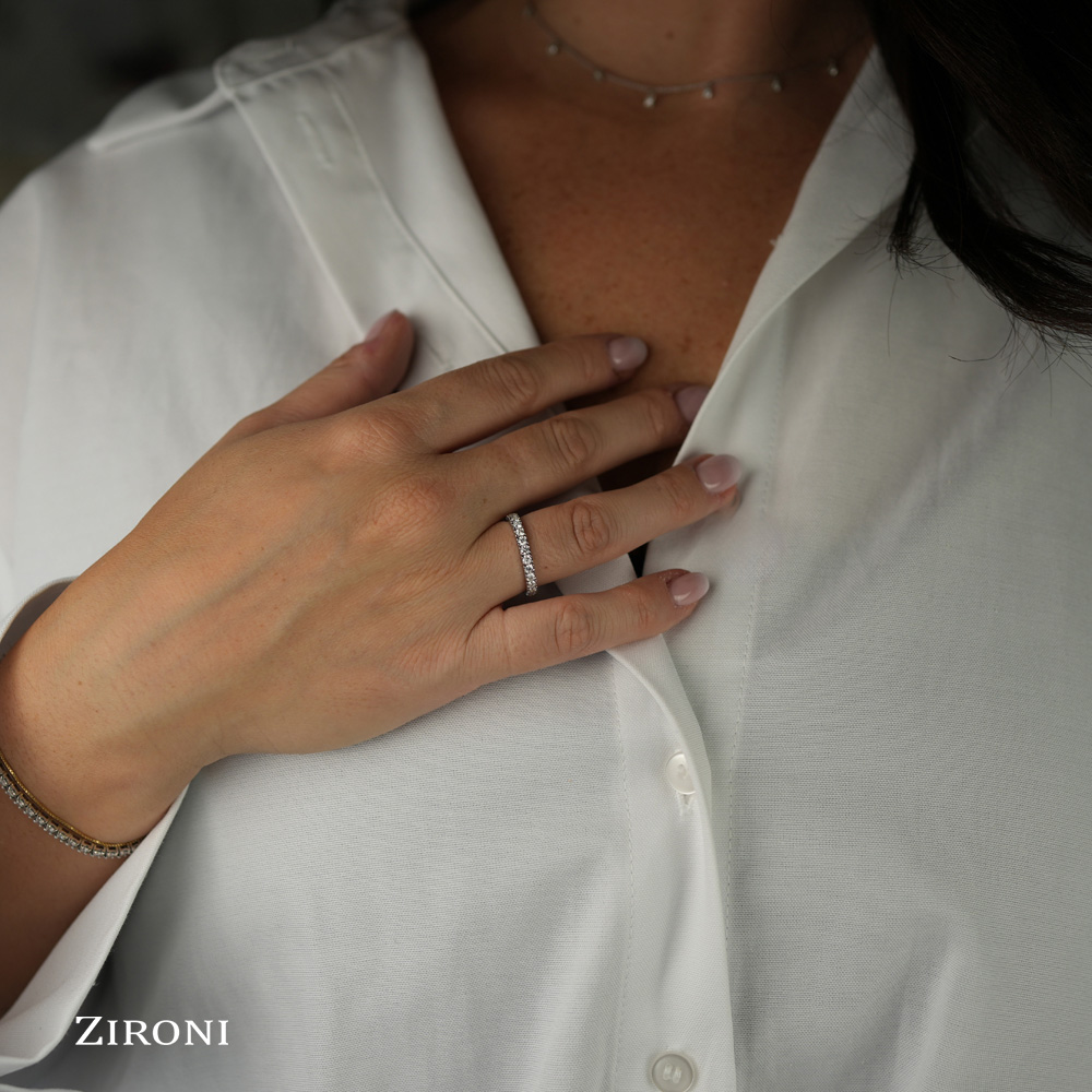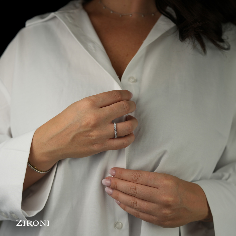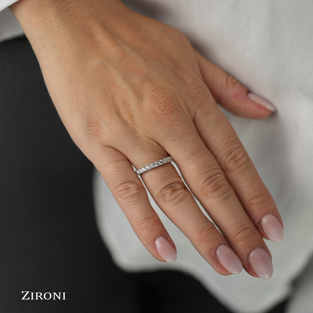 I 13 diamanti taglio brillante da 0,71 ct (D-E - SI) sono stati scelti e calibrati con estrema precisione, così la montatura risulta perfettamente regolare, comoda e più facile da mantenere pulita.