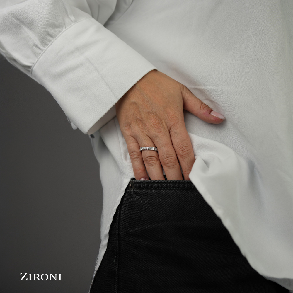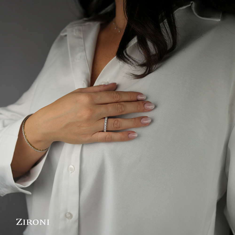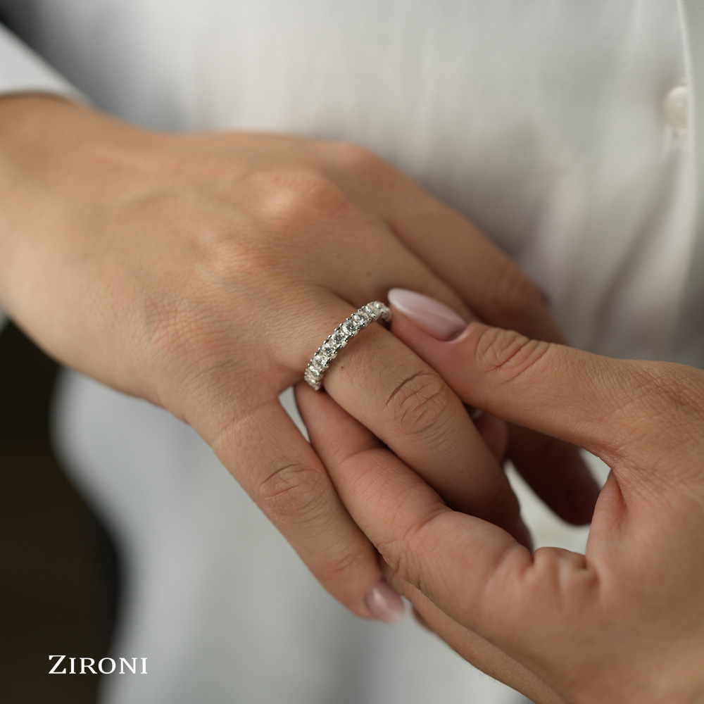 Gli 11 diamanti taglio brillante da 0,10 ct (F - SI) sono stati scelti e calibrati con estrema precisione, così la montatura risulta perfettamente regolare, comoda e più facile da mantenere pulita.