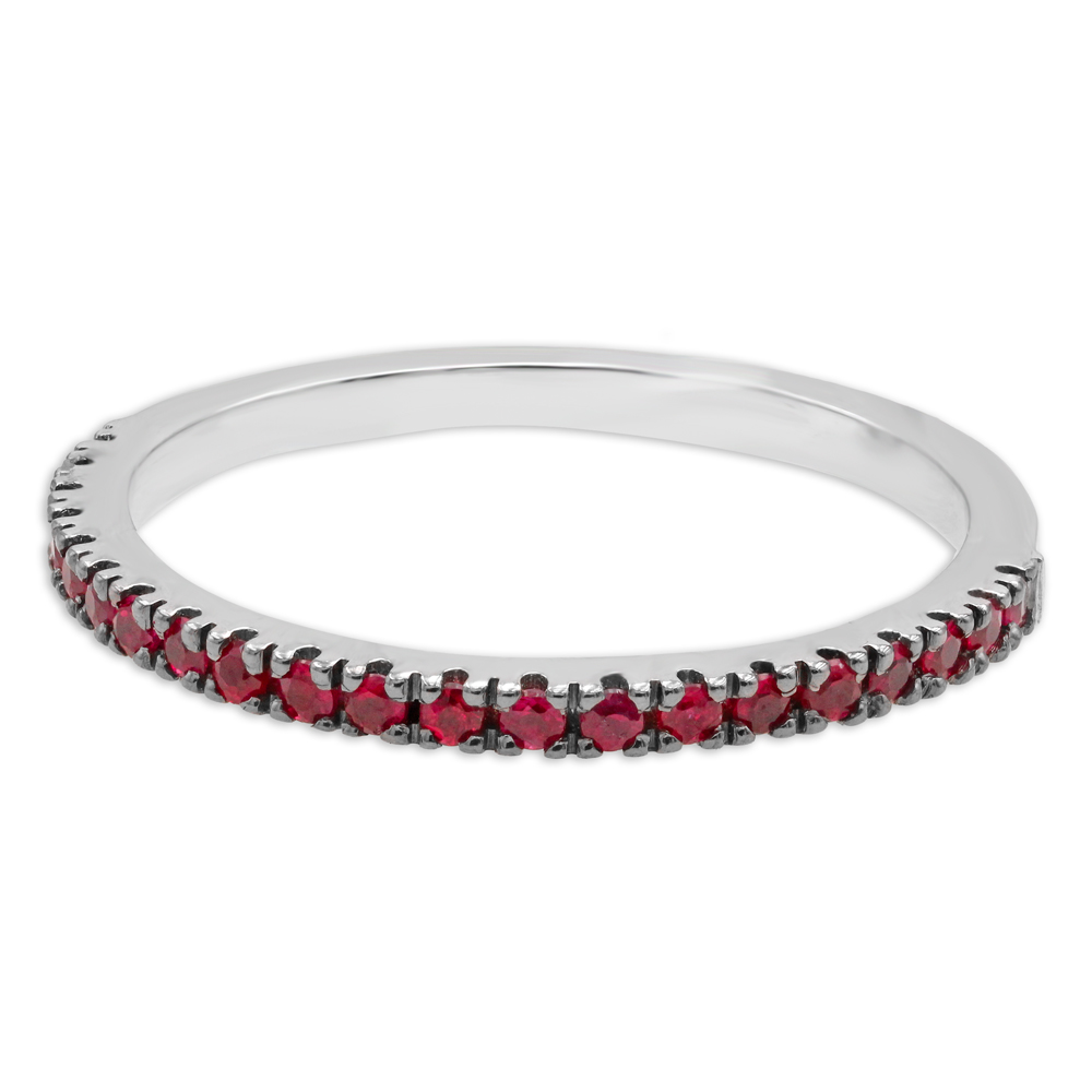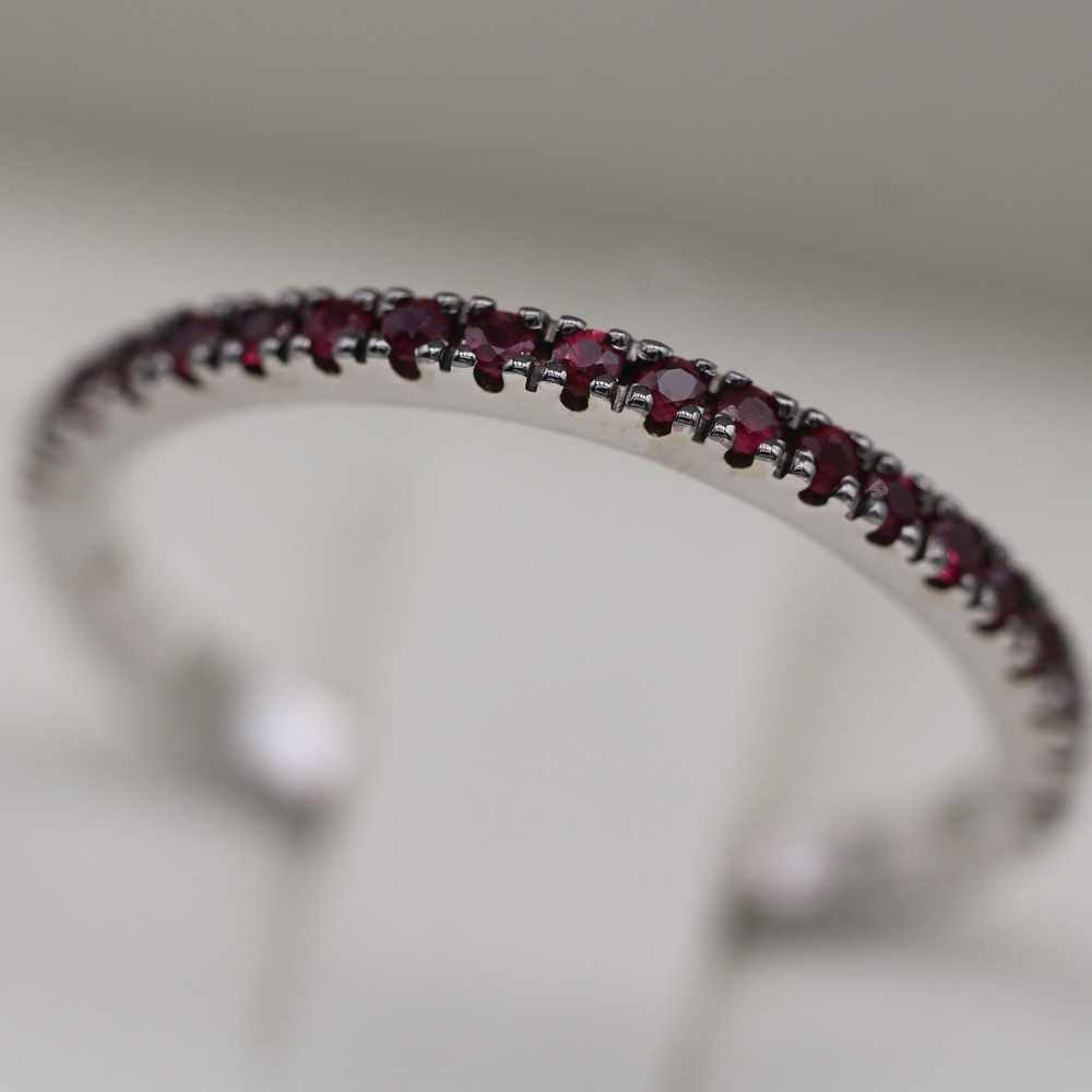 Fedina in oro bianco 18K con rubini taglio brillante - spessore 1,50 mm