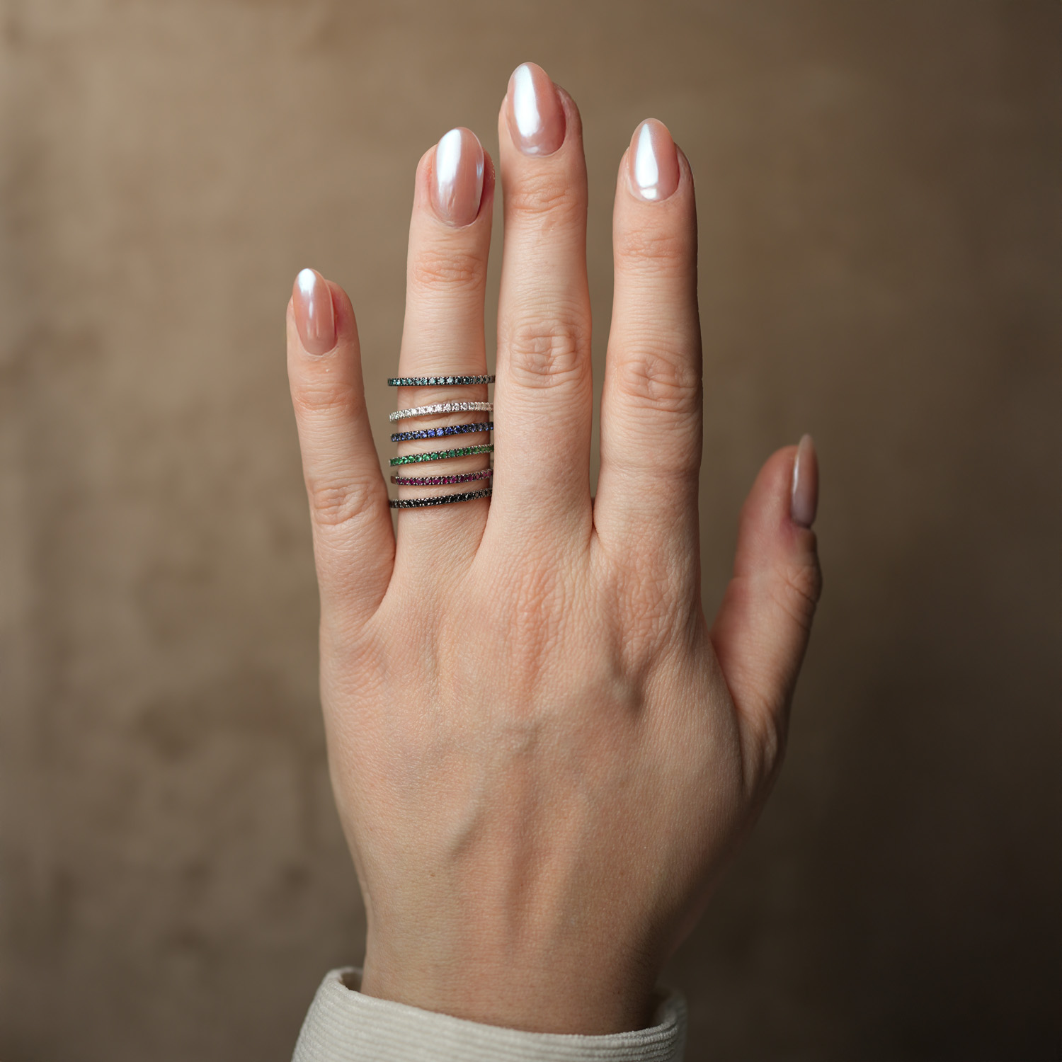 Fedina in oro bianco 18K con zaffiri taglio brillante - spessore 1,50 mm